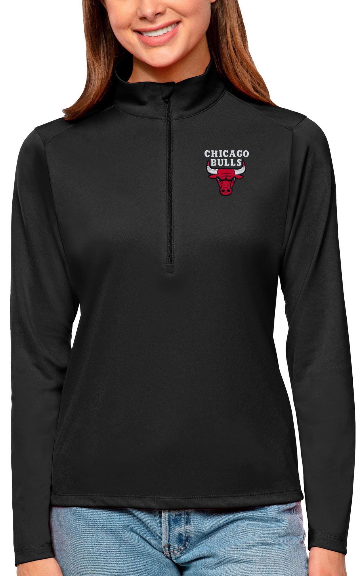 Antigua Women's Chicago Bulls Tribute Black Pullover Sweater