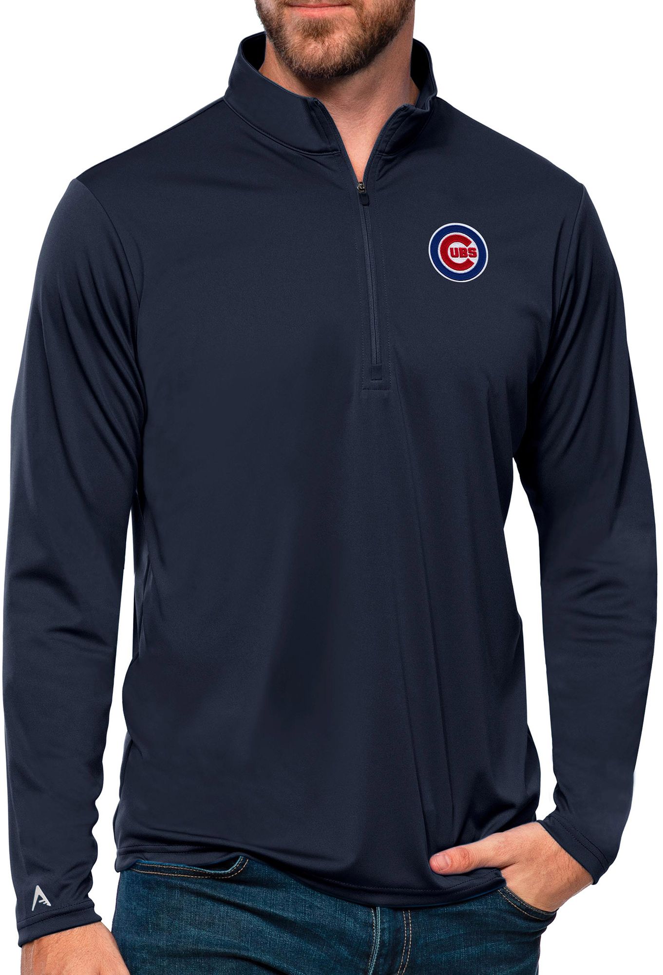 Antigua Adult Chicago Cubs Navy Tribute 1/4 Zip Pullover