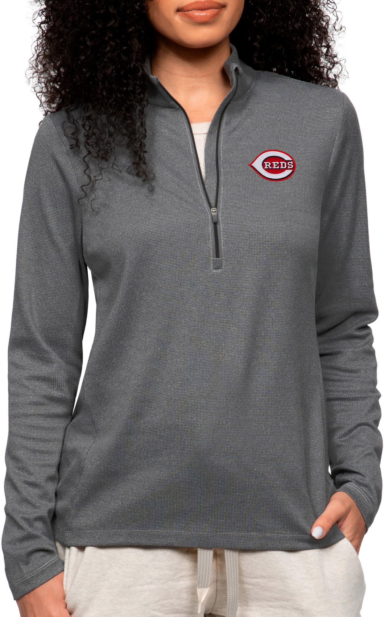 Antigua Women's Cincinnati Reds Charcoal Epic 1/4 Zip Pullover