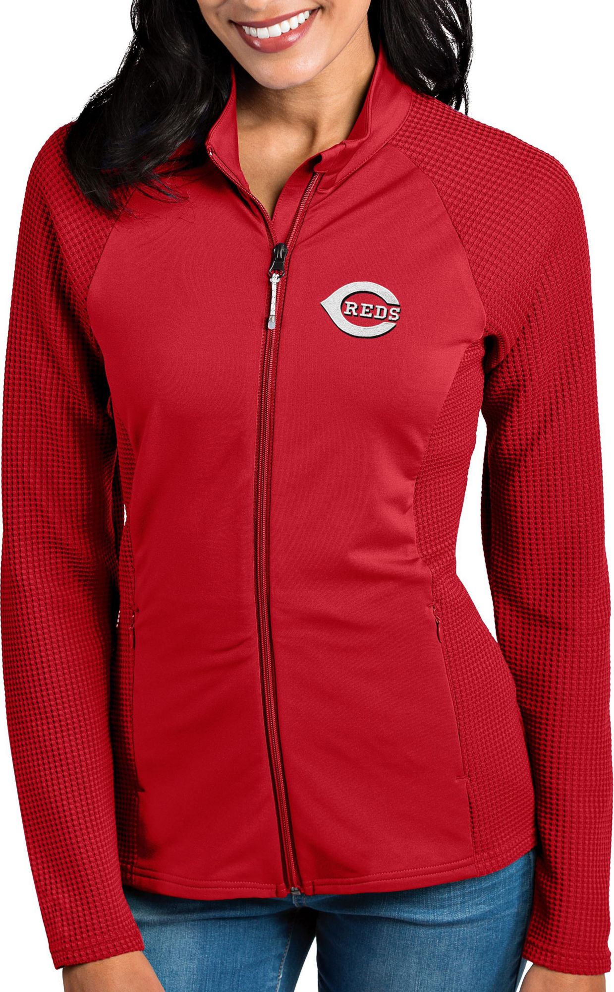 Antigua Women's Cincinnati Reds Red Sonar Performance Quarter-Zip Pullover