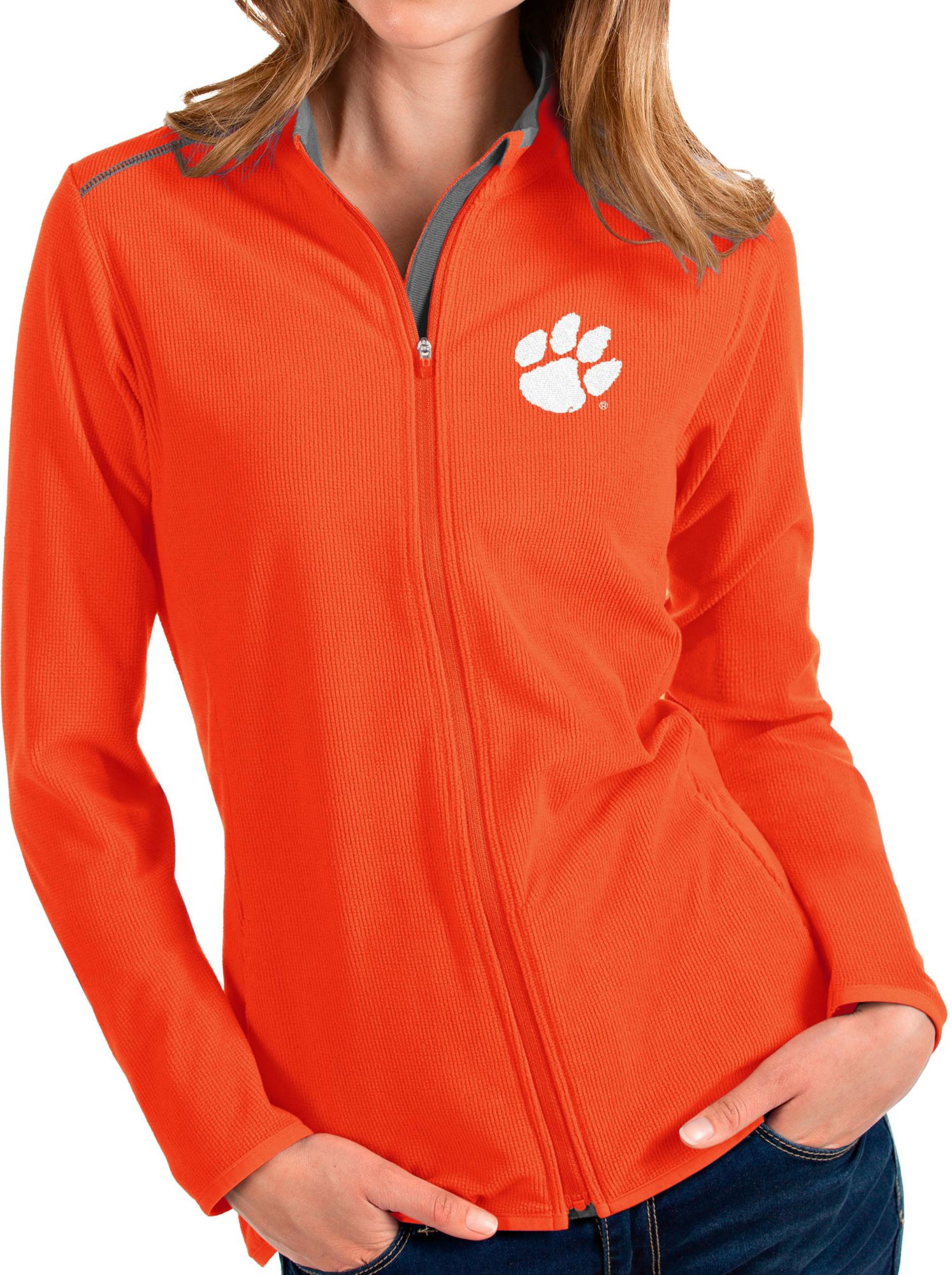 Keep your Tigers pride stylish long after the sun goes down with the Antigua® Women’s Clemson Tigers Glacier Full-Zip Jacket.