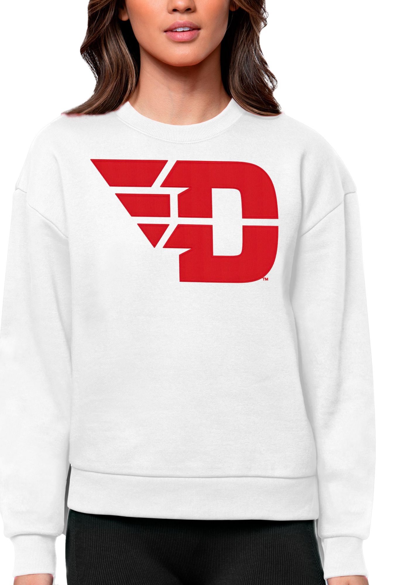Antigua Women's Dayton Flyers White Victory Crew Sweatshirt