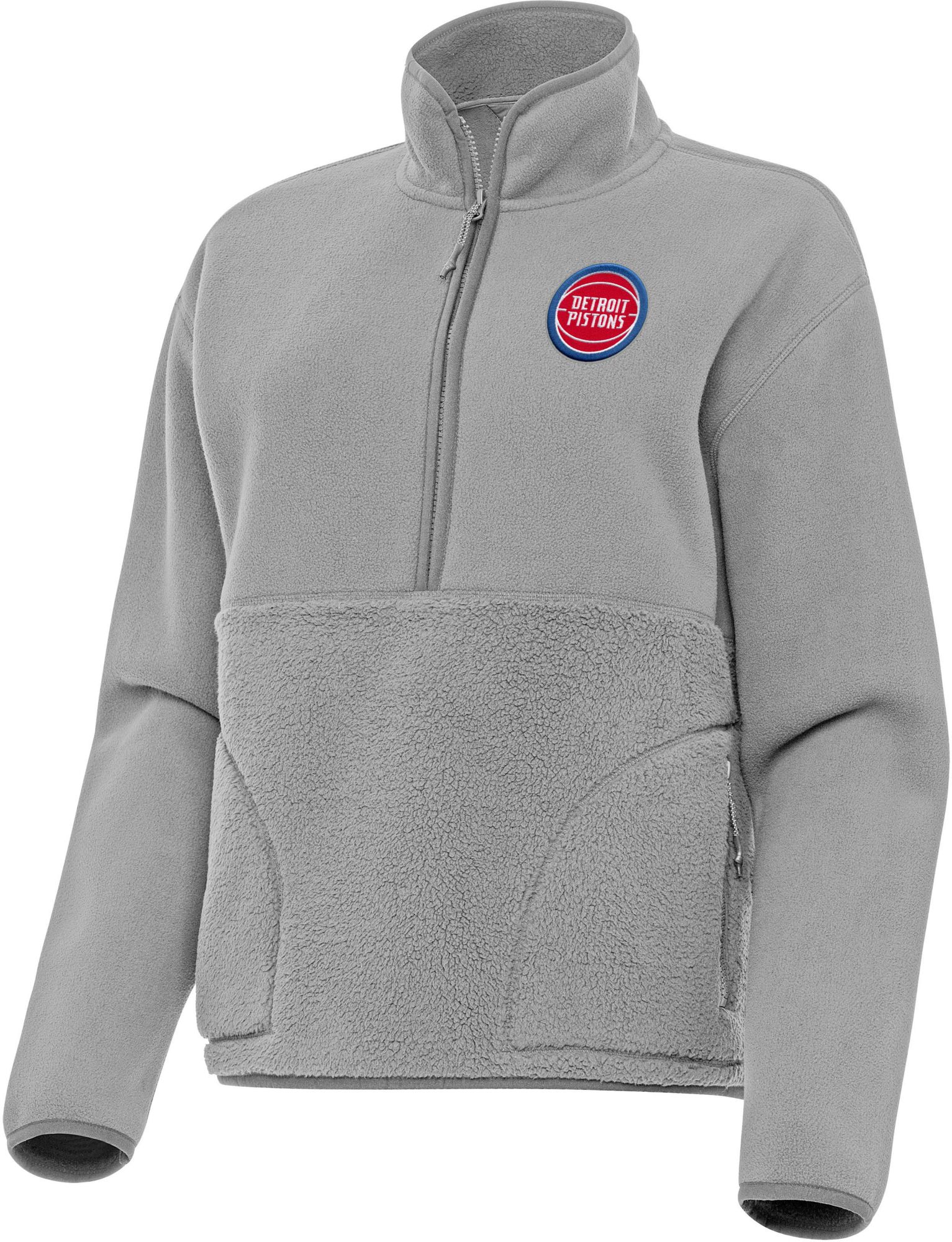 Antigua Women's Detroit Pistons Grey Figure Quarter-Zip Pullover