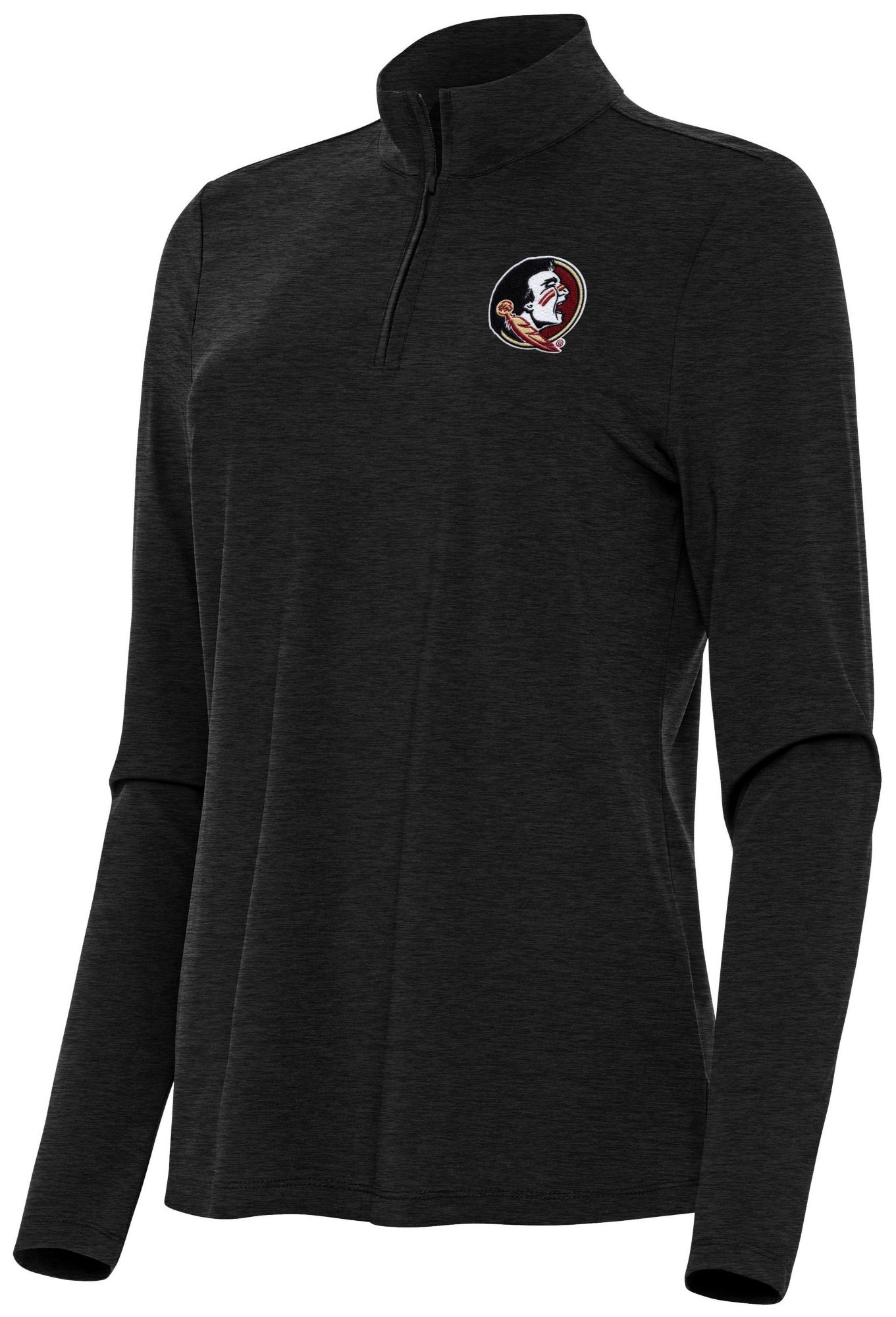Antigua Women's Florida State Seminoles Black Heather Bright 1/4 Zip Pullover