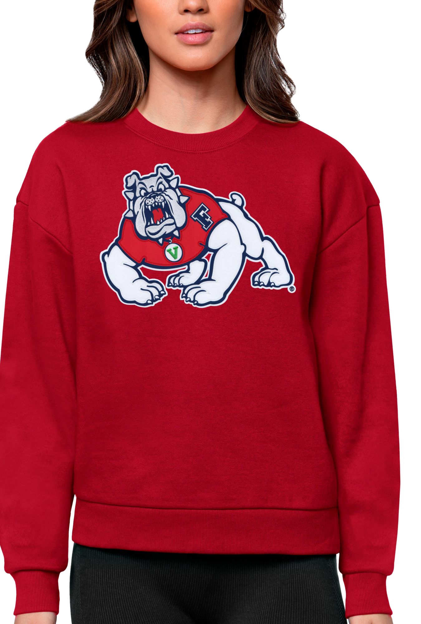 Antigua Women's Fresno State Bulldogs Dark Red Victory Crew Sweatshirt