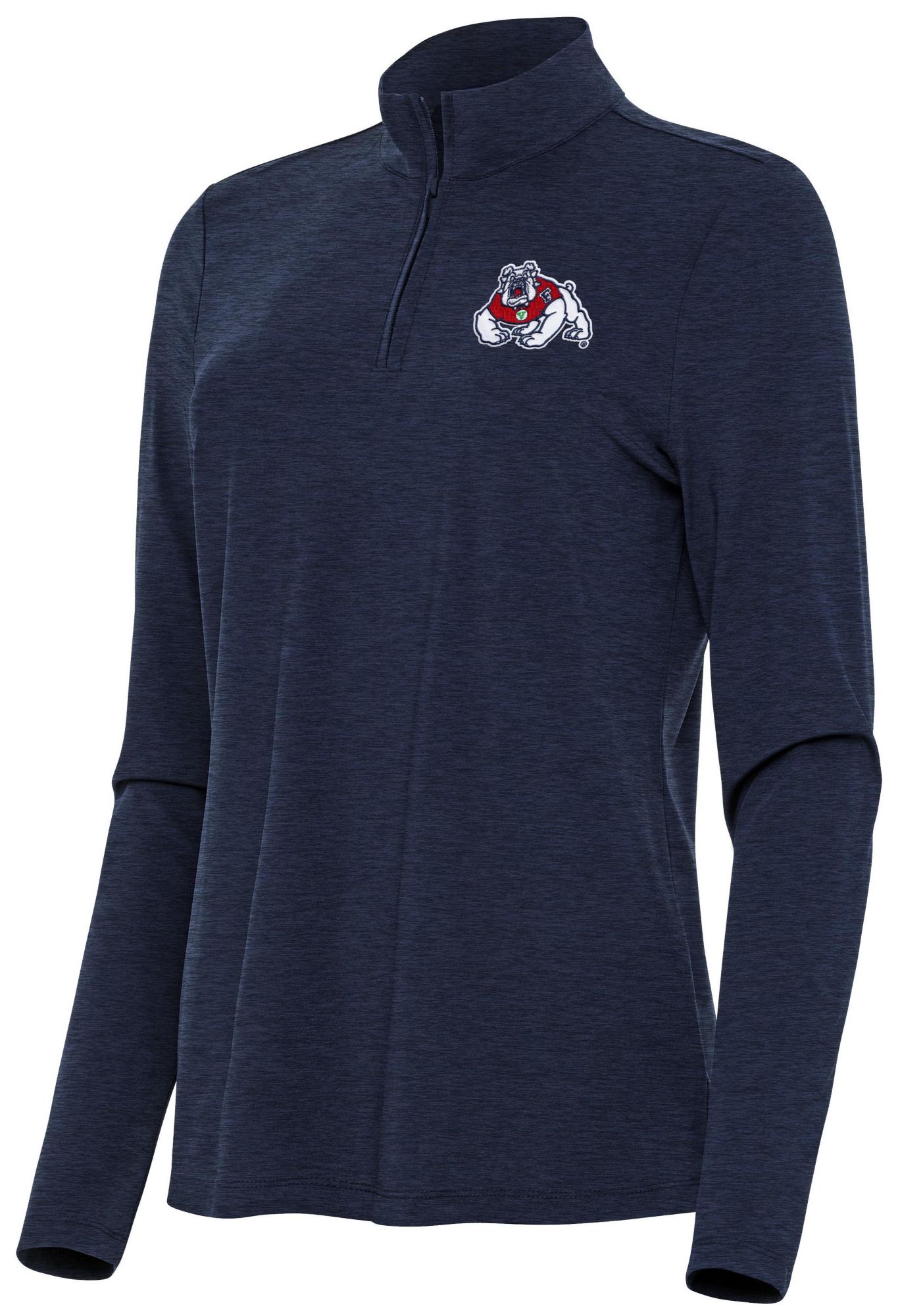 Antigua Women's Fresno State Bulldogs Navy Heather Bright 1/4 Zip Pullover