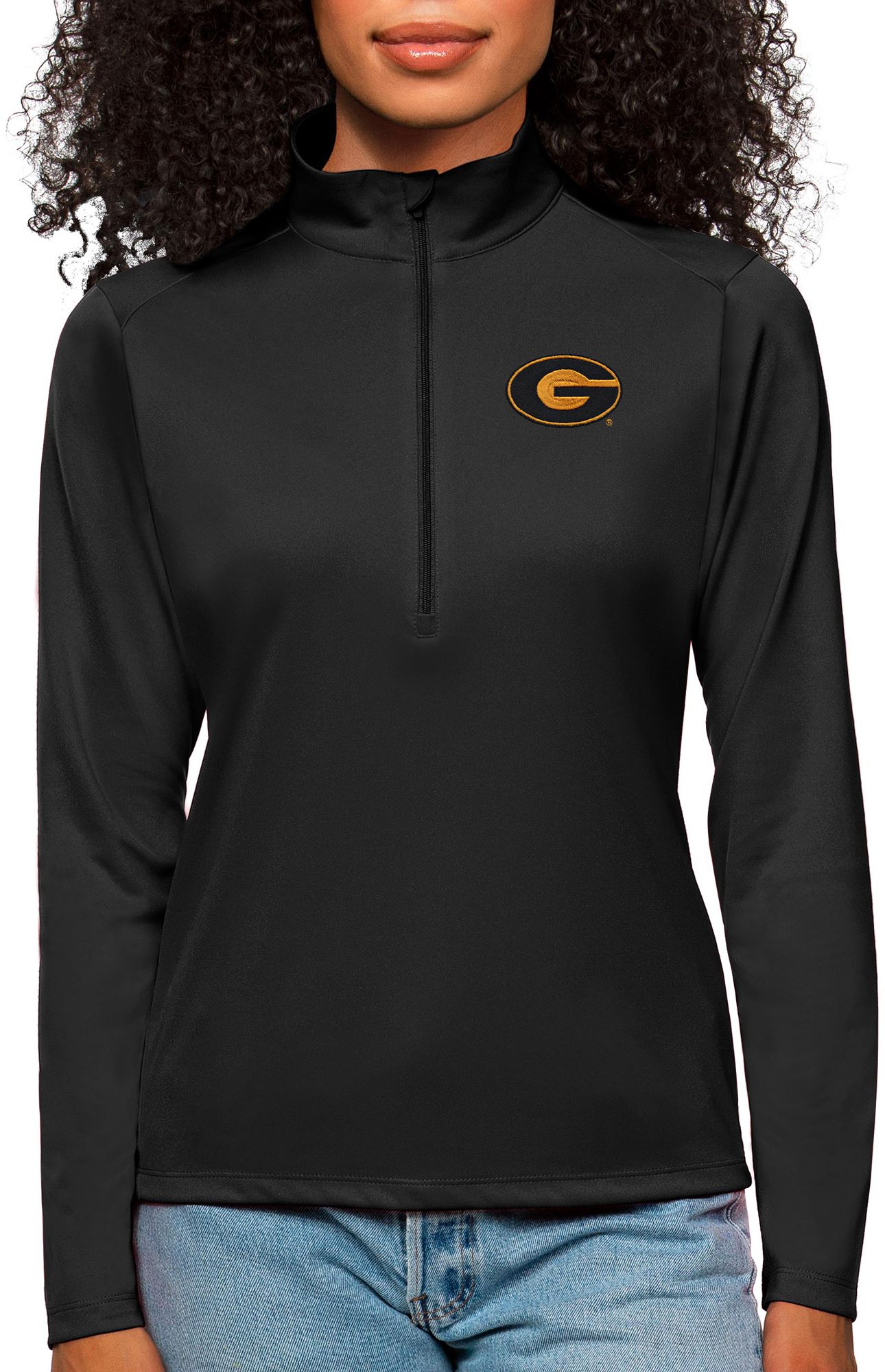 Antigua Women's Grambling State Tigers Black Tribute 1/4 Zip Jacket