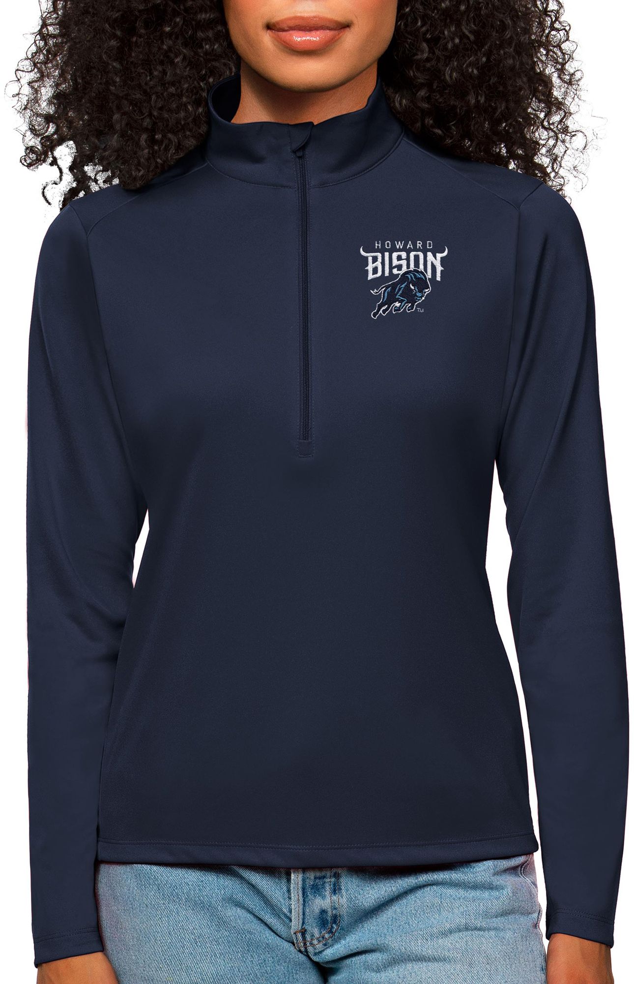 Antigua Women's Howard Bison Navy Tribute 1/4 Zip Jacket
