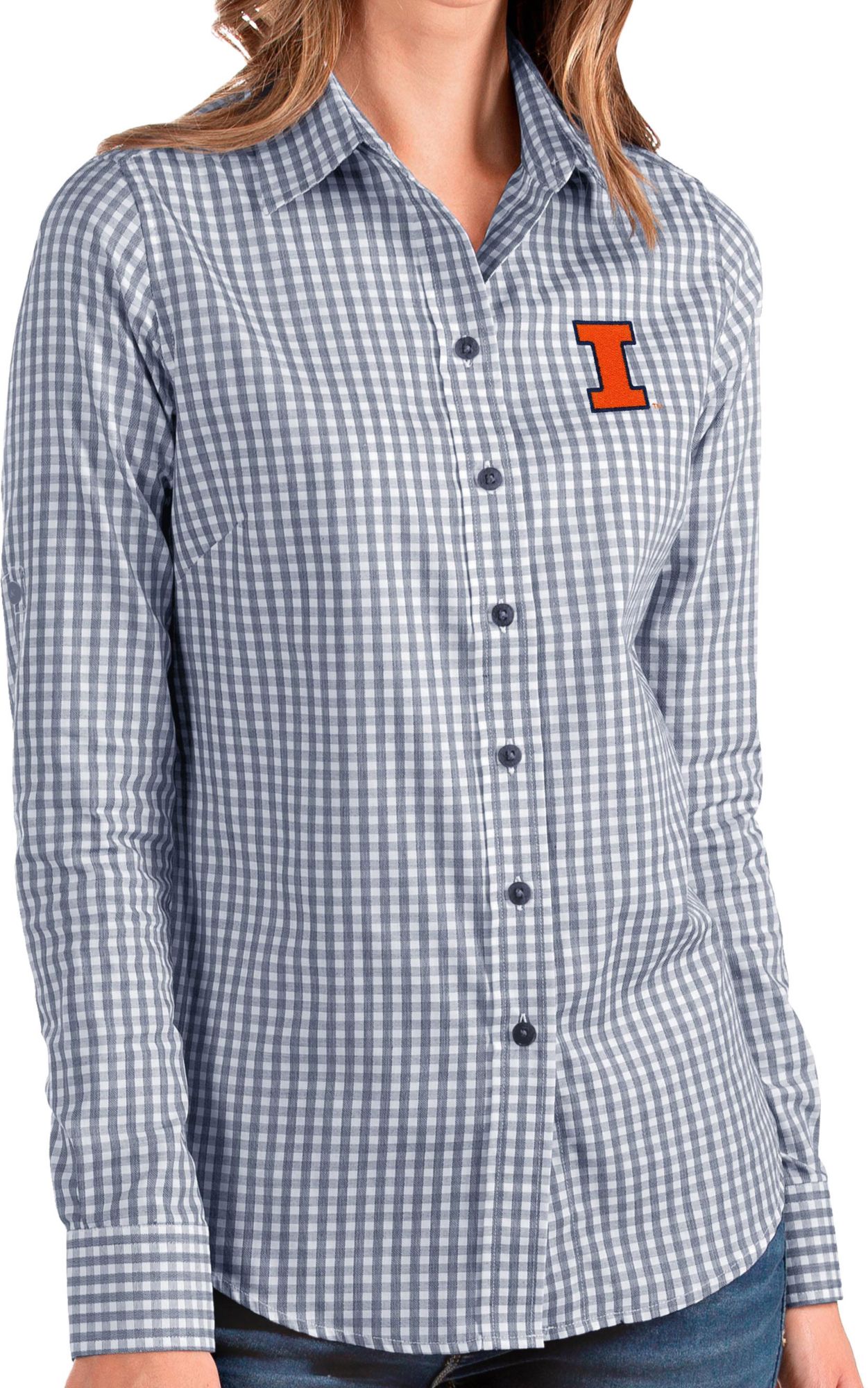 Add stylish Fighting Illini class to your game day gear with the Antigua® Women’s Illinois Fighting Illini Structure Button Down Long Sleeve Shirt.