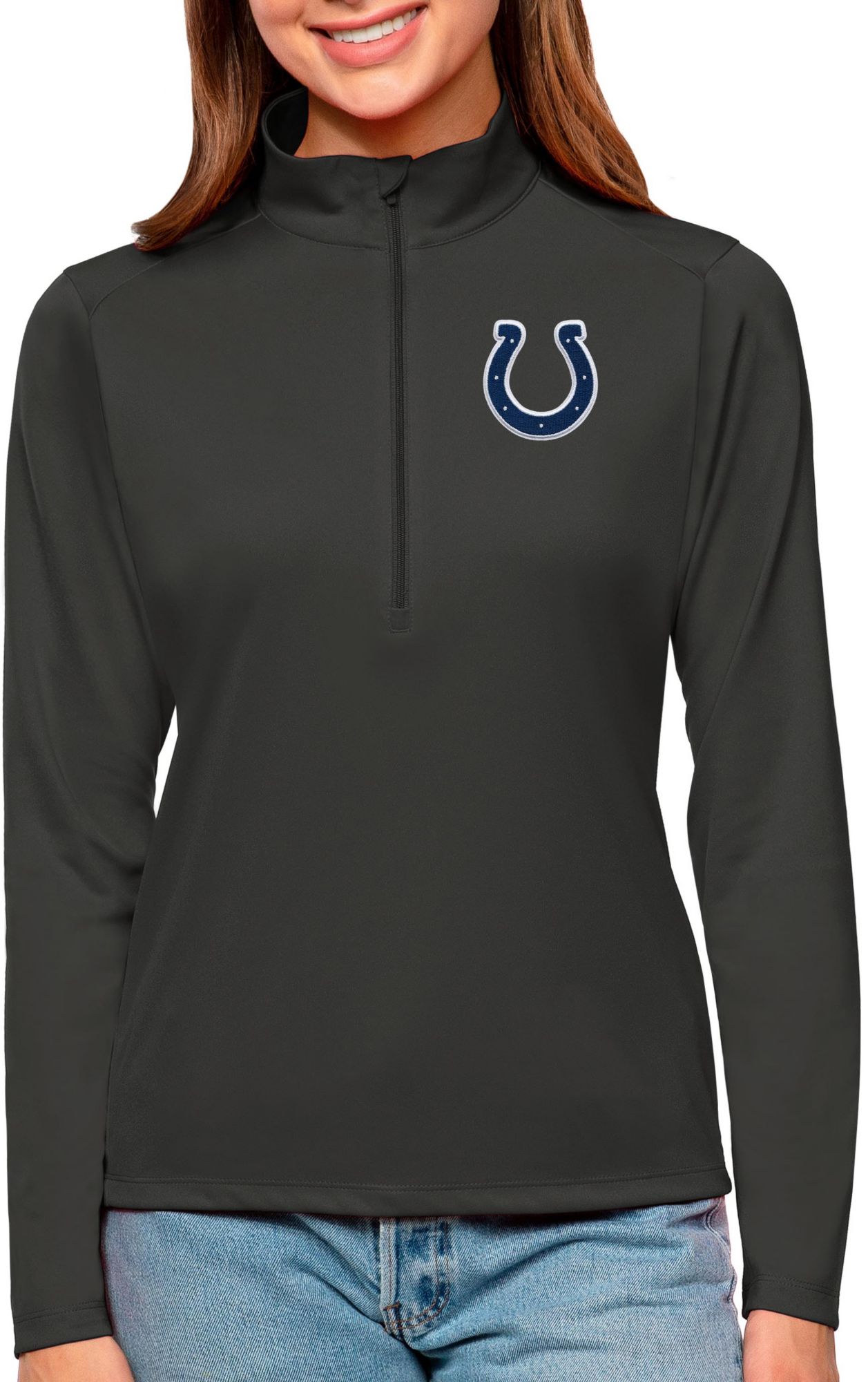 Antigua Women's Indianapolis Colts Tribute Grey 1/4-Zip Pullover