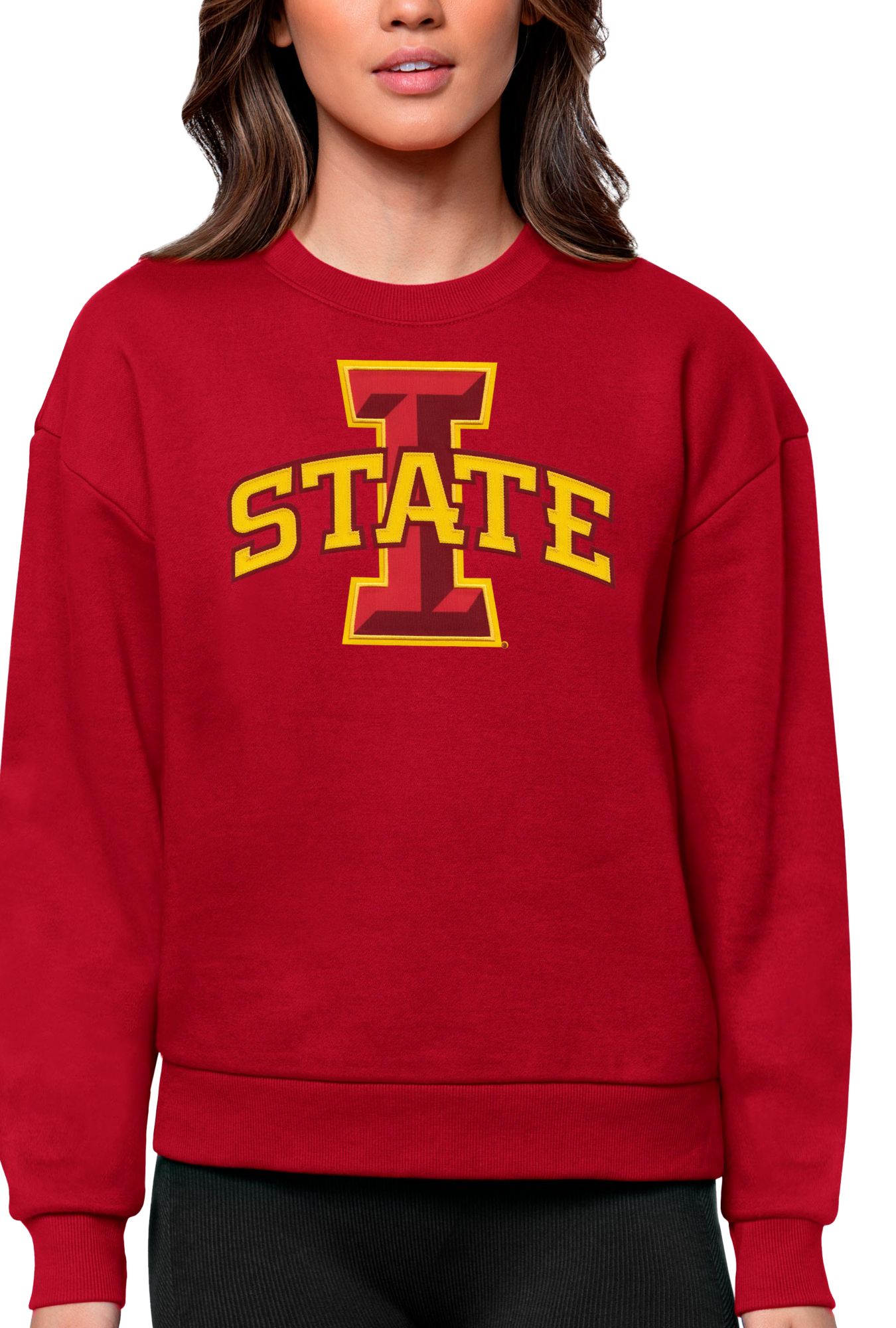 Antigua Women's Iowa State Cyclones Dark Red Victory Crew Sweatshirt