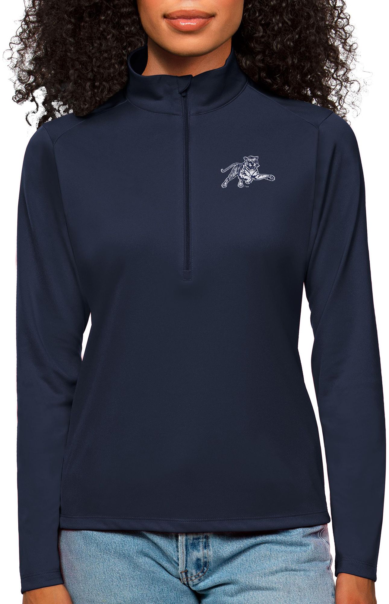 Antigua Women's Jackson State Tigers Navy Tribute 1/4 Zip Jacket