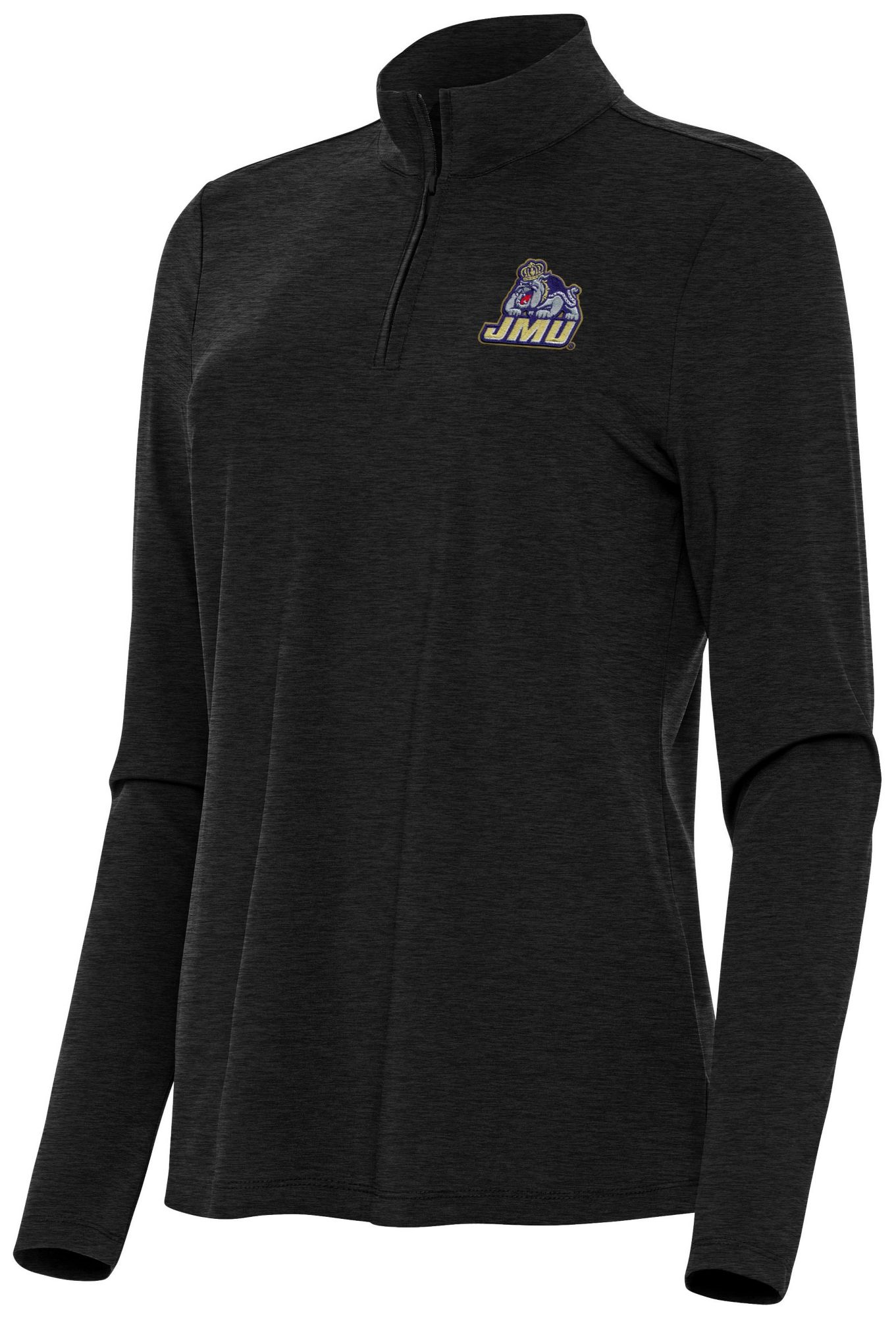 Antigua Women's James Madison Dukes Black Heather Bright 1/4 Zip Pullover