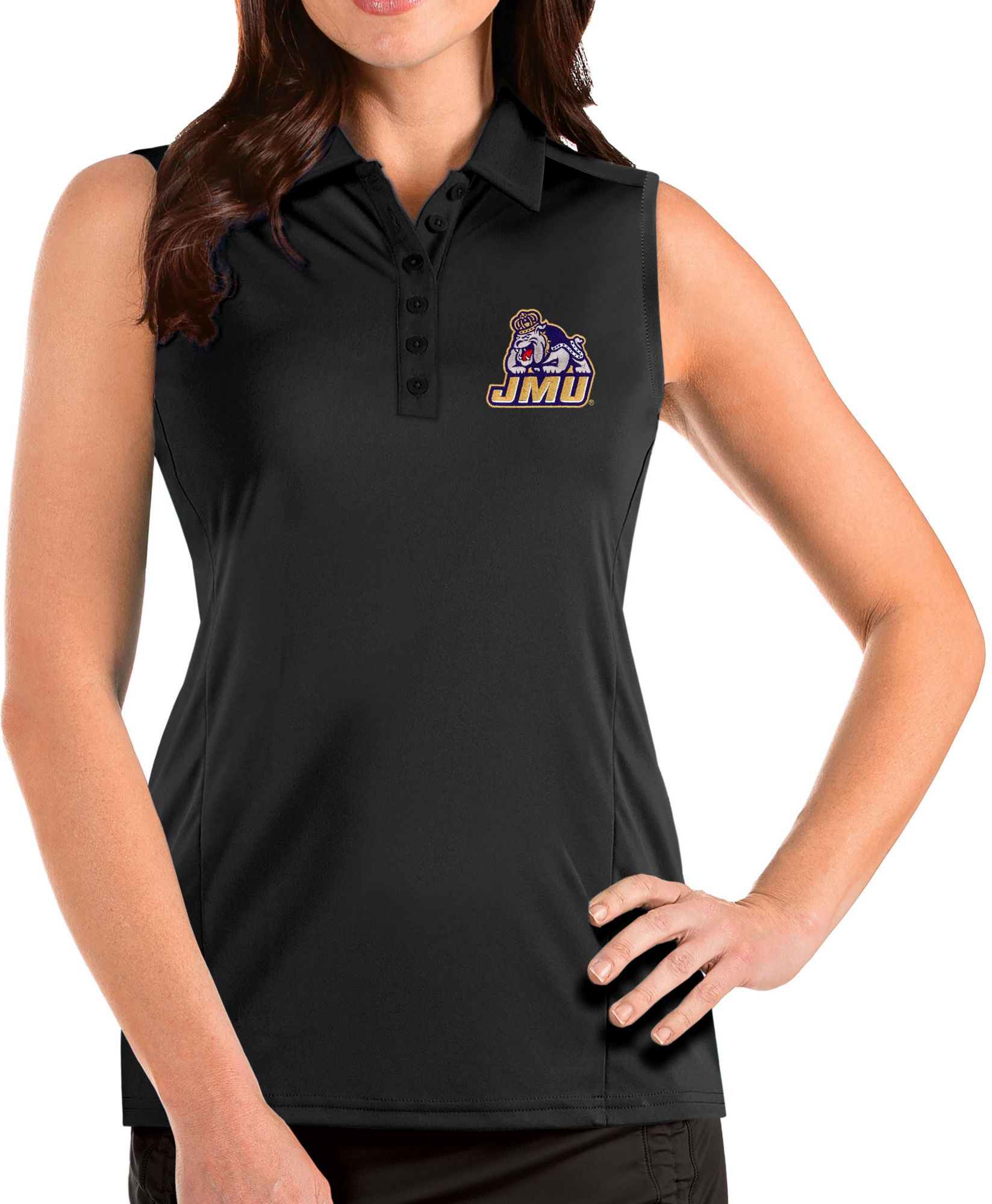 Antigua Women's James Madison Dukes Tribute Sleeveless Tank Black Top