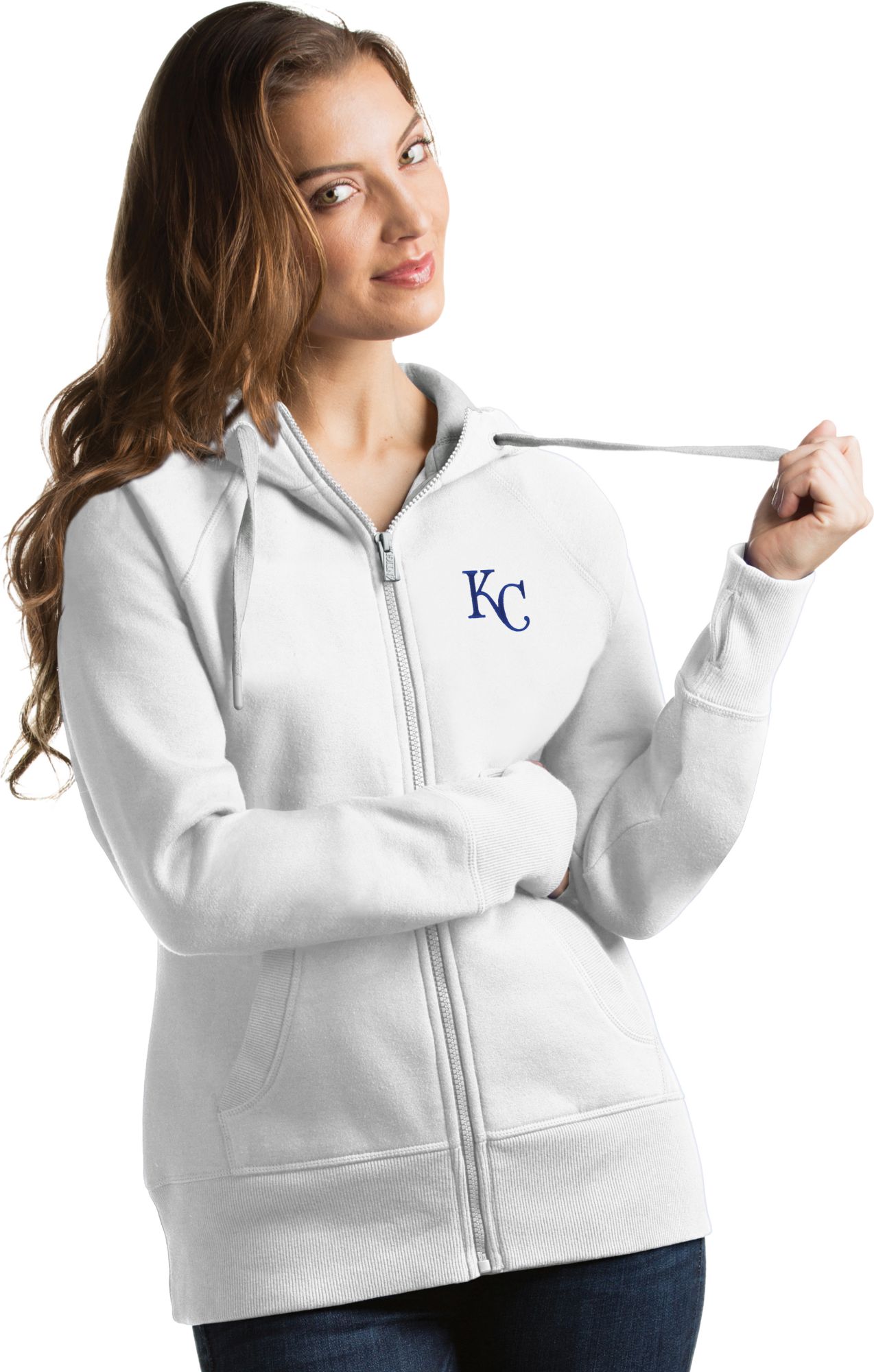 Antigua Women's Kansas City Royals White Victory Full-Zip Hoodie