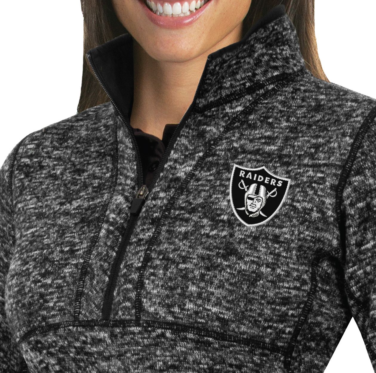 Great for layering in the winter or sporting on its own at the tailgate, the Antigua® Las Vegas Raiders Fortune Pullover Jacket shows your NFL allegiance in complete comfort, thanks to soft, brushed-back fleece and the mock neck design.