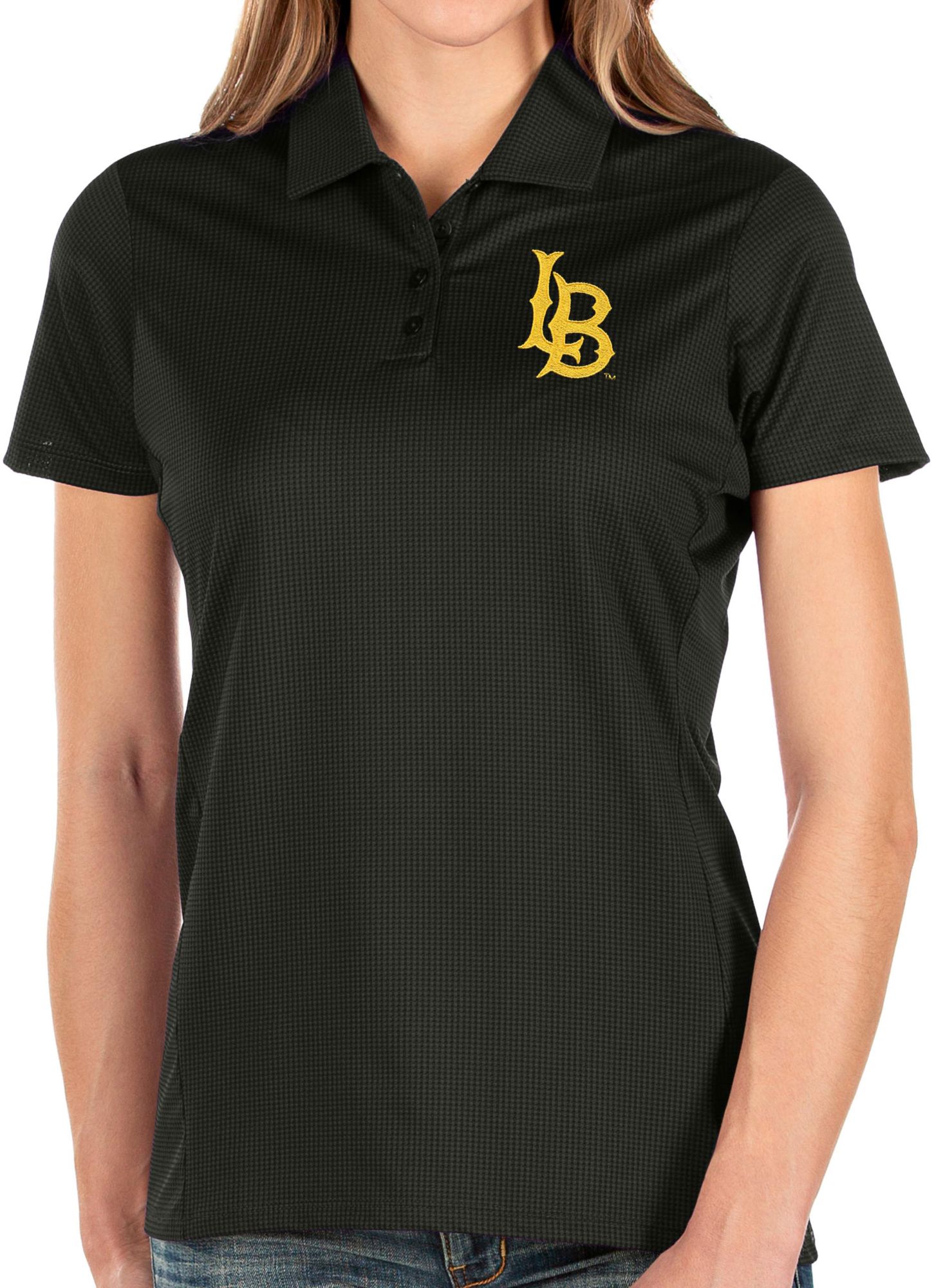 Antigua Women's Long Beach State 49ers Balance Black Polo