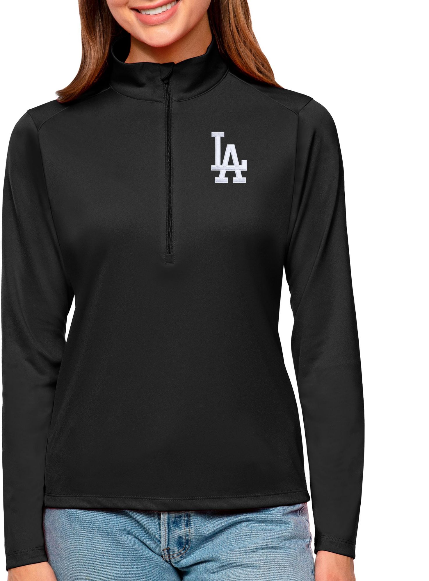 Antigua Women's Los Angeles Dodgers Black Tribute 1/2 Zip Pullover