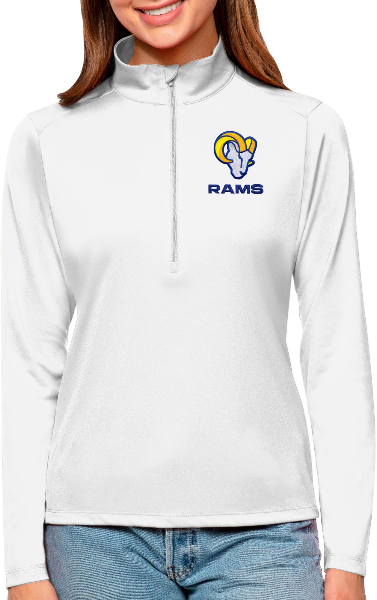 Antigua Women's Los Angeles Rams Tribute White 1/4-Zip Pullover