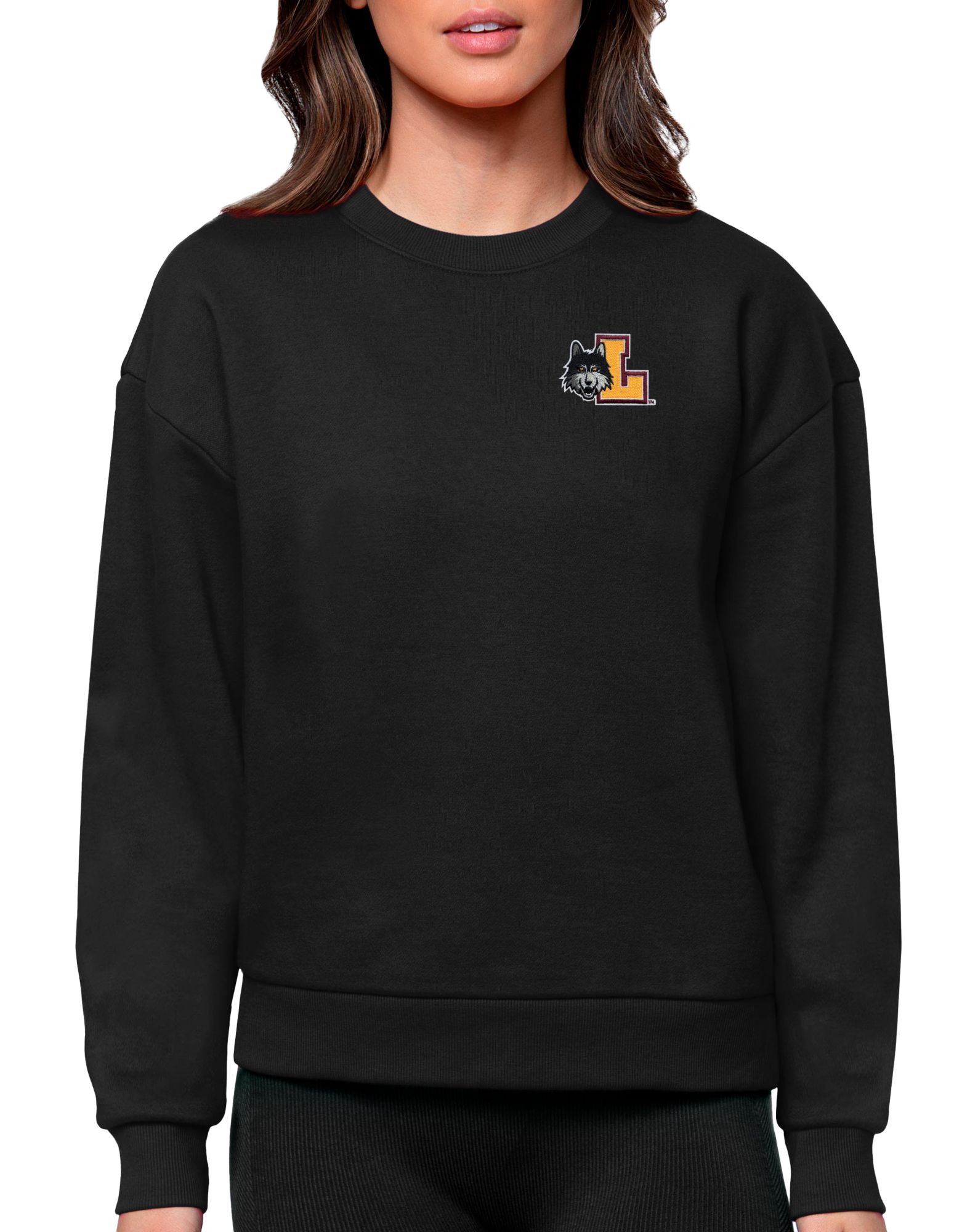 Antigua Women's Loyola-Chicago Ramblers Black Victory Crew Sweatshirt