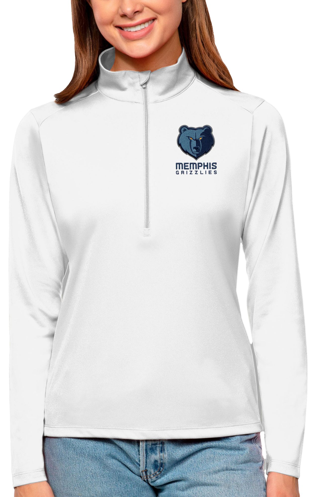 Antigua Women's Memphis Grizzlies Tribute White Pullover Sweater