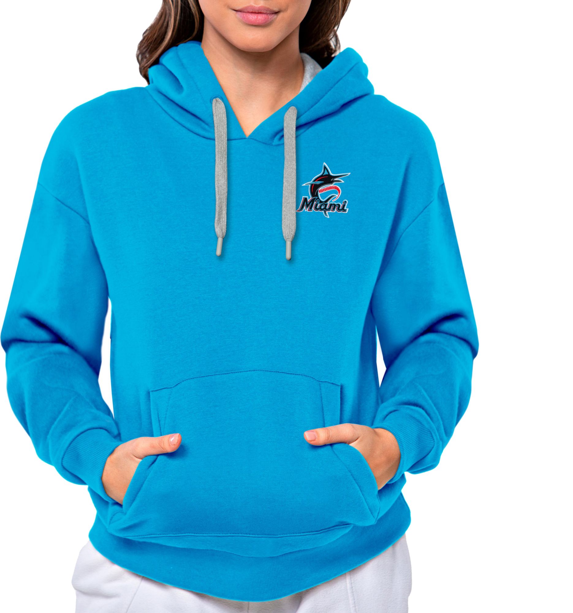 Antigua Women's Miami Marlins Blue Victory Hooded Pullover