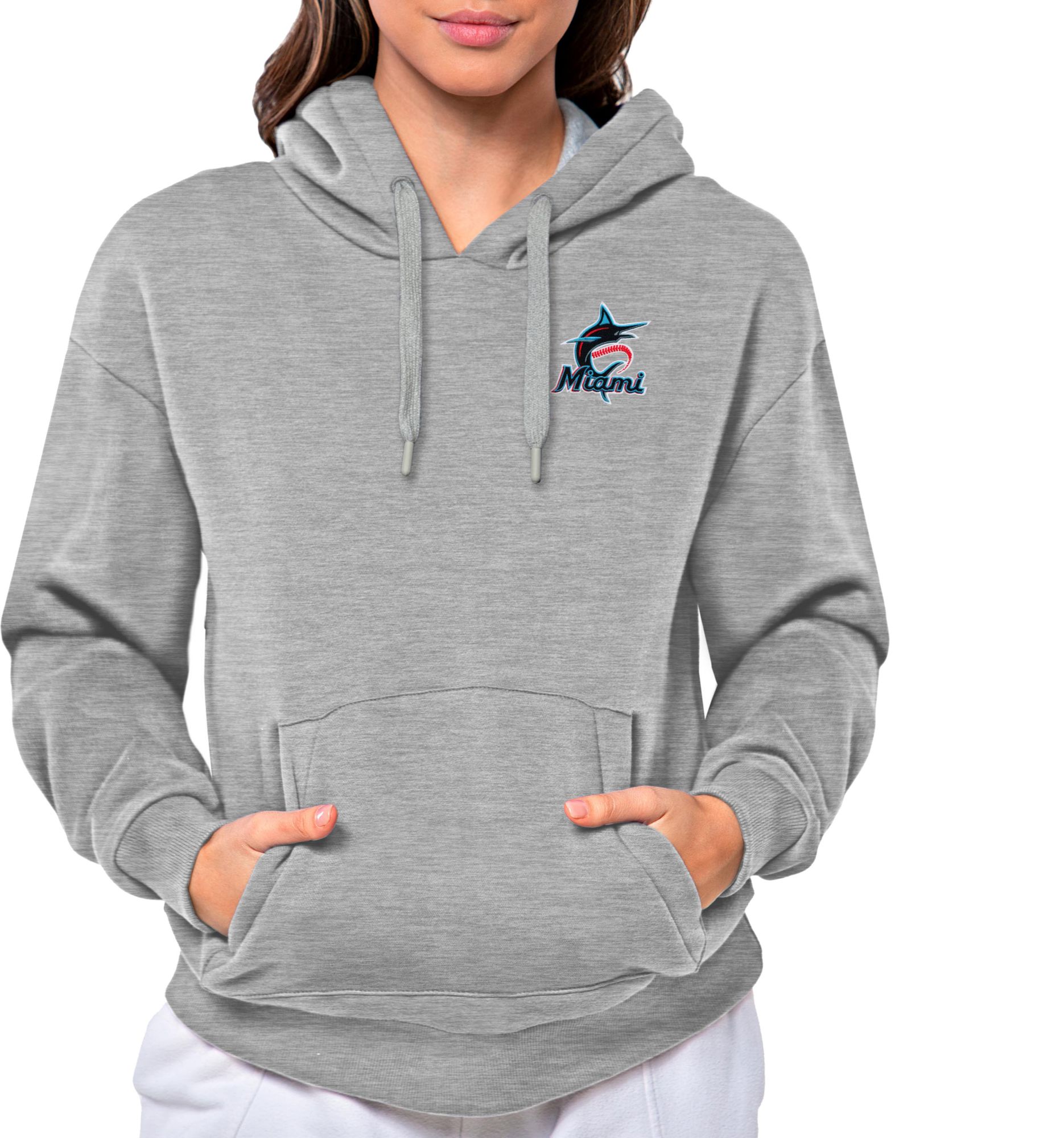 Antigua Women's Miami Marlins Gray Victory Hooded Pullover