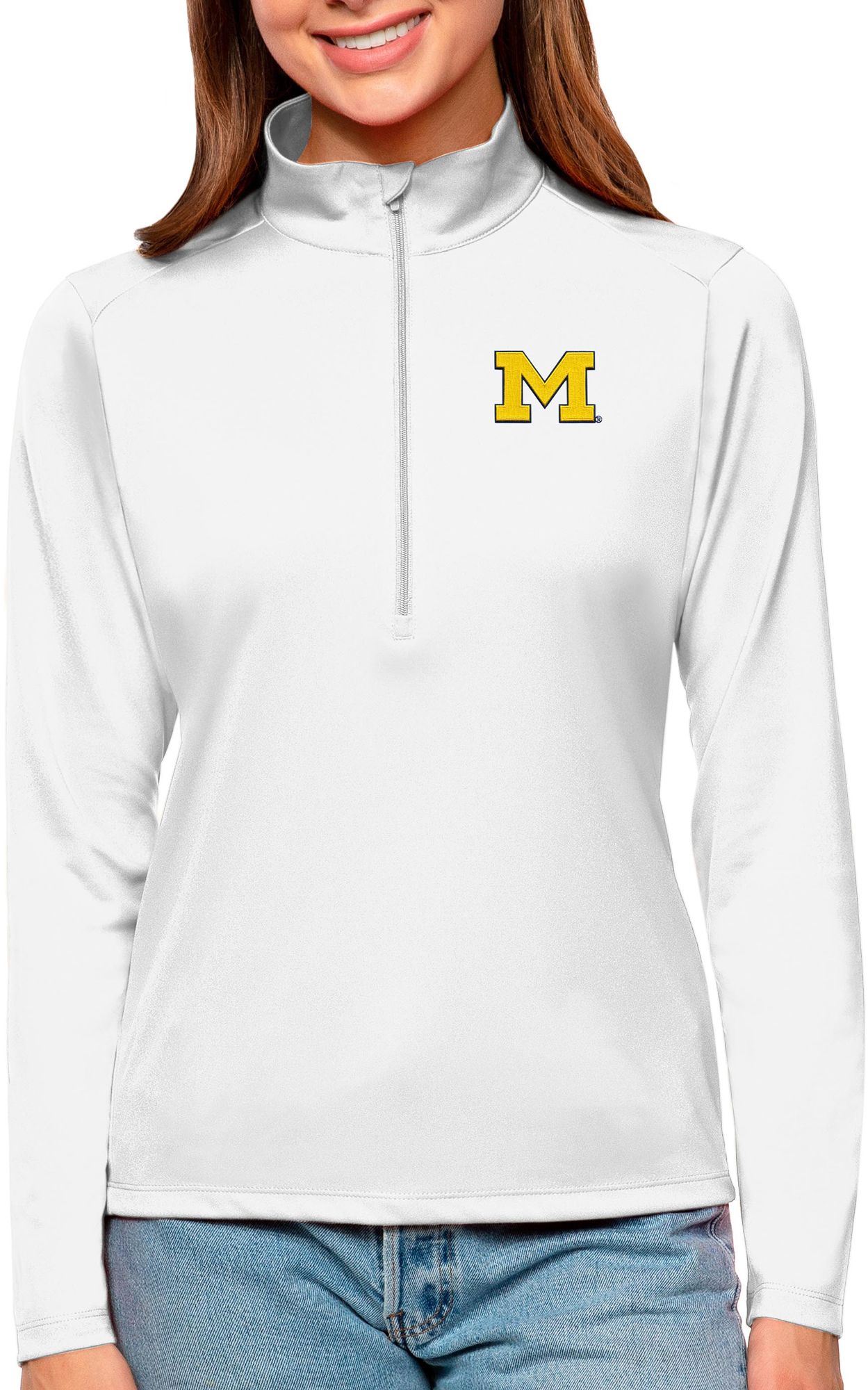 Antigua Women's Michigan Wolverines White Tribute Quarter-Zip Shirt