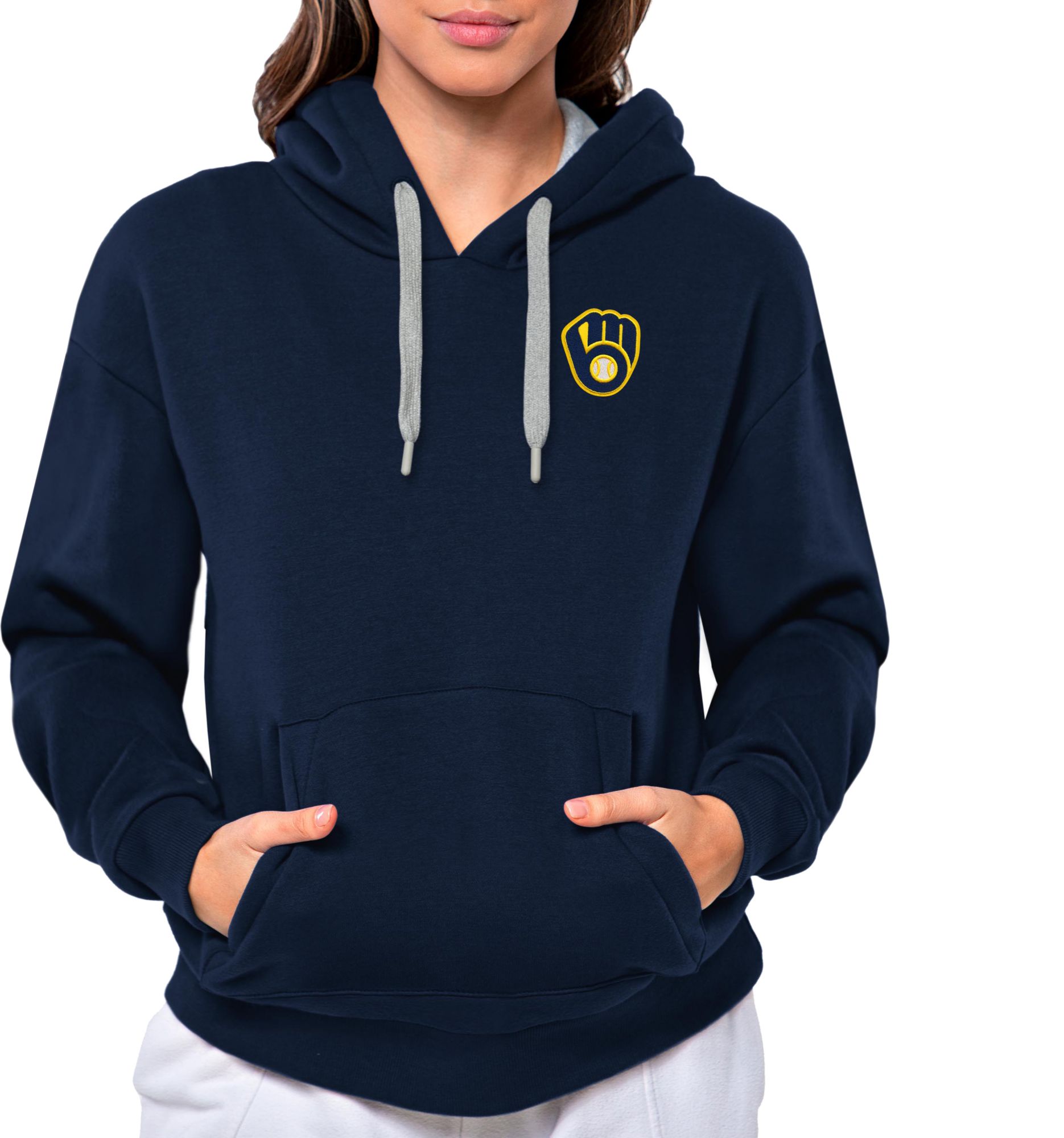 Antigua Women's Milwaukee Brewers Navy Victory Hooded Pullover