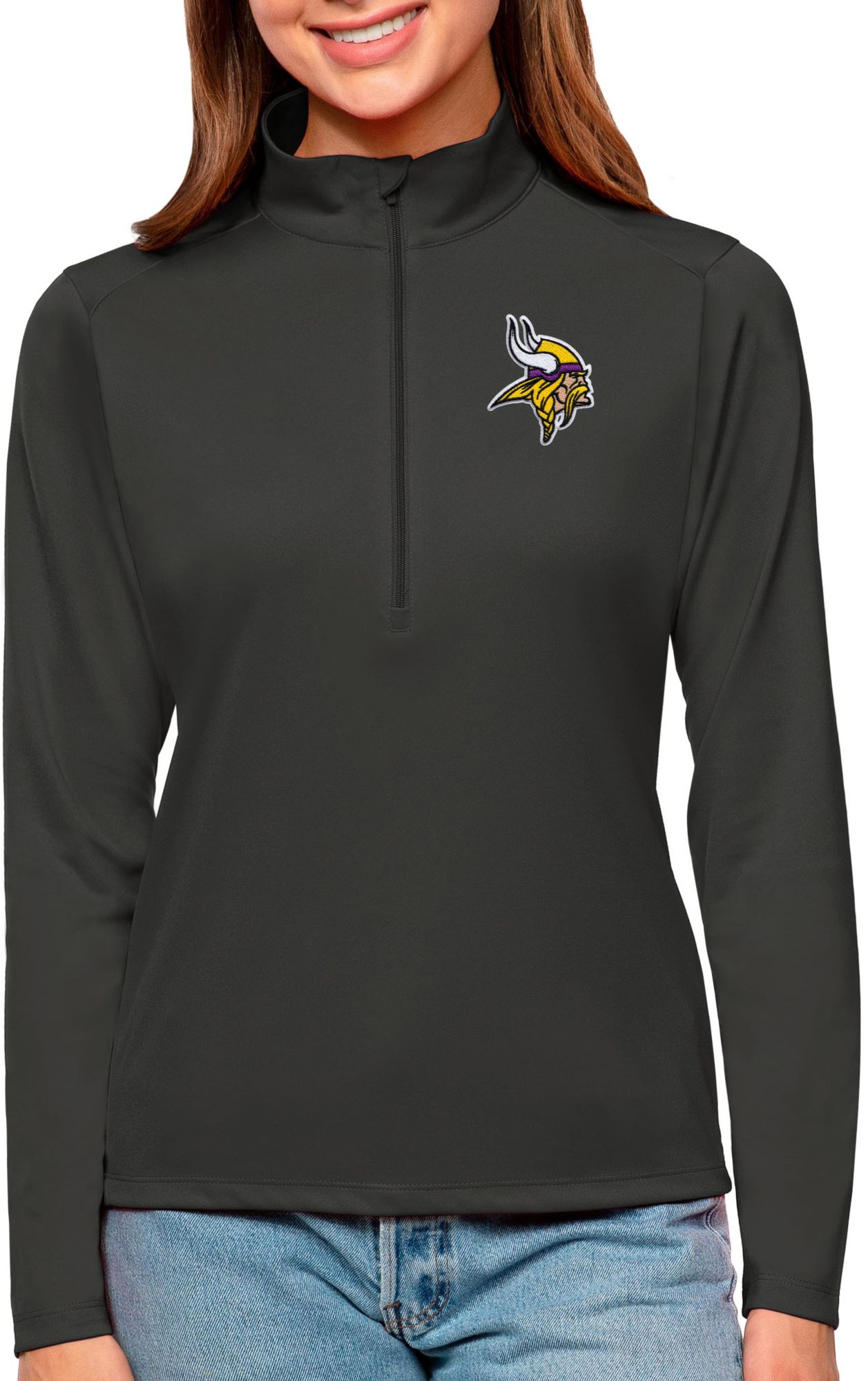 Antigua Women's Minnesota Vikings Tribute Grey 1/4-Zip Pullover