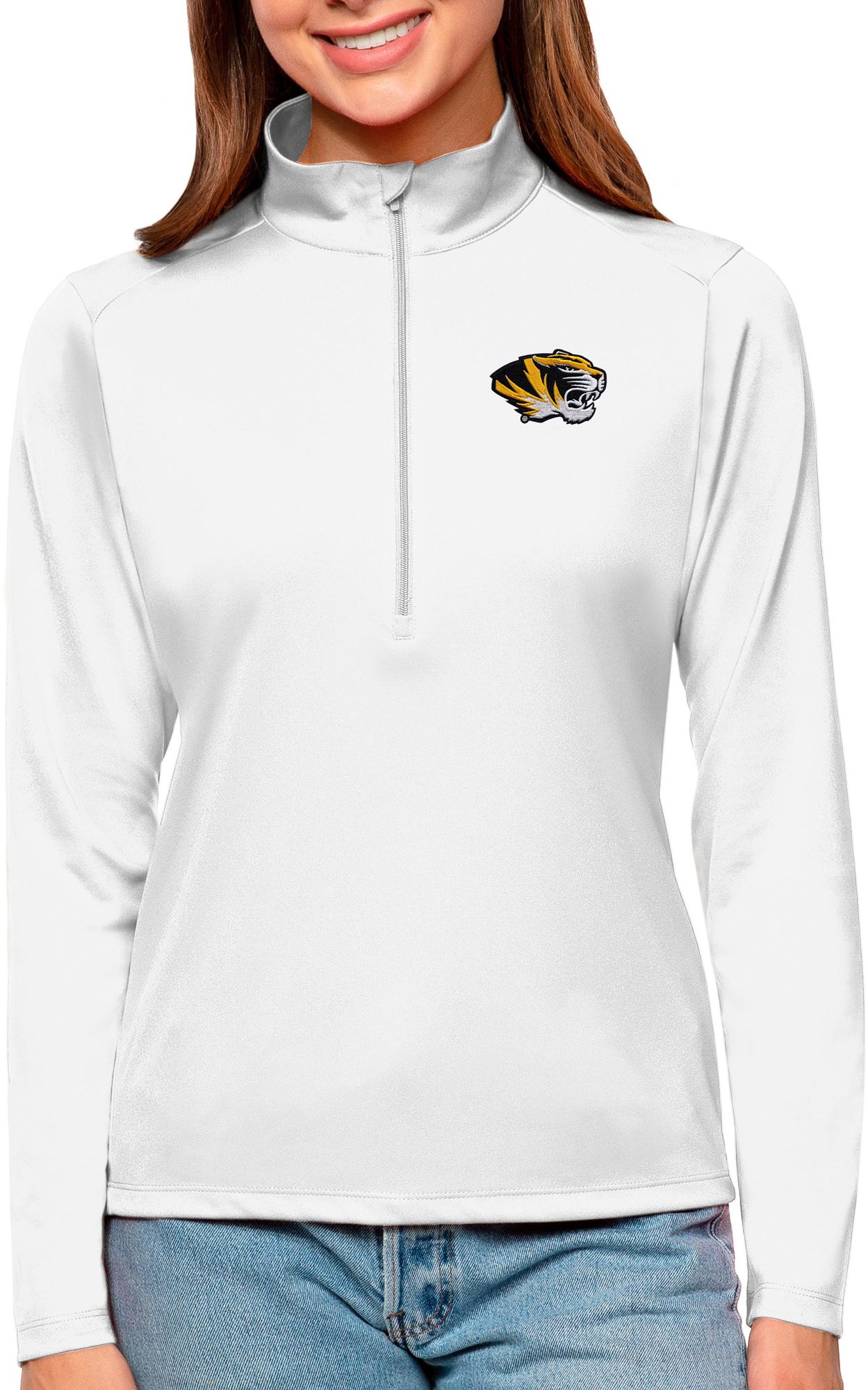 Antigua Women's Missouri Tigers White Tribute Quarter-Zip Shirt