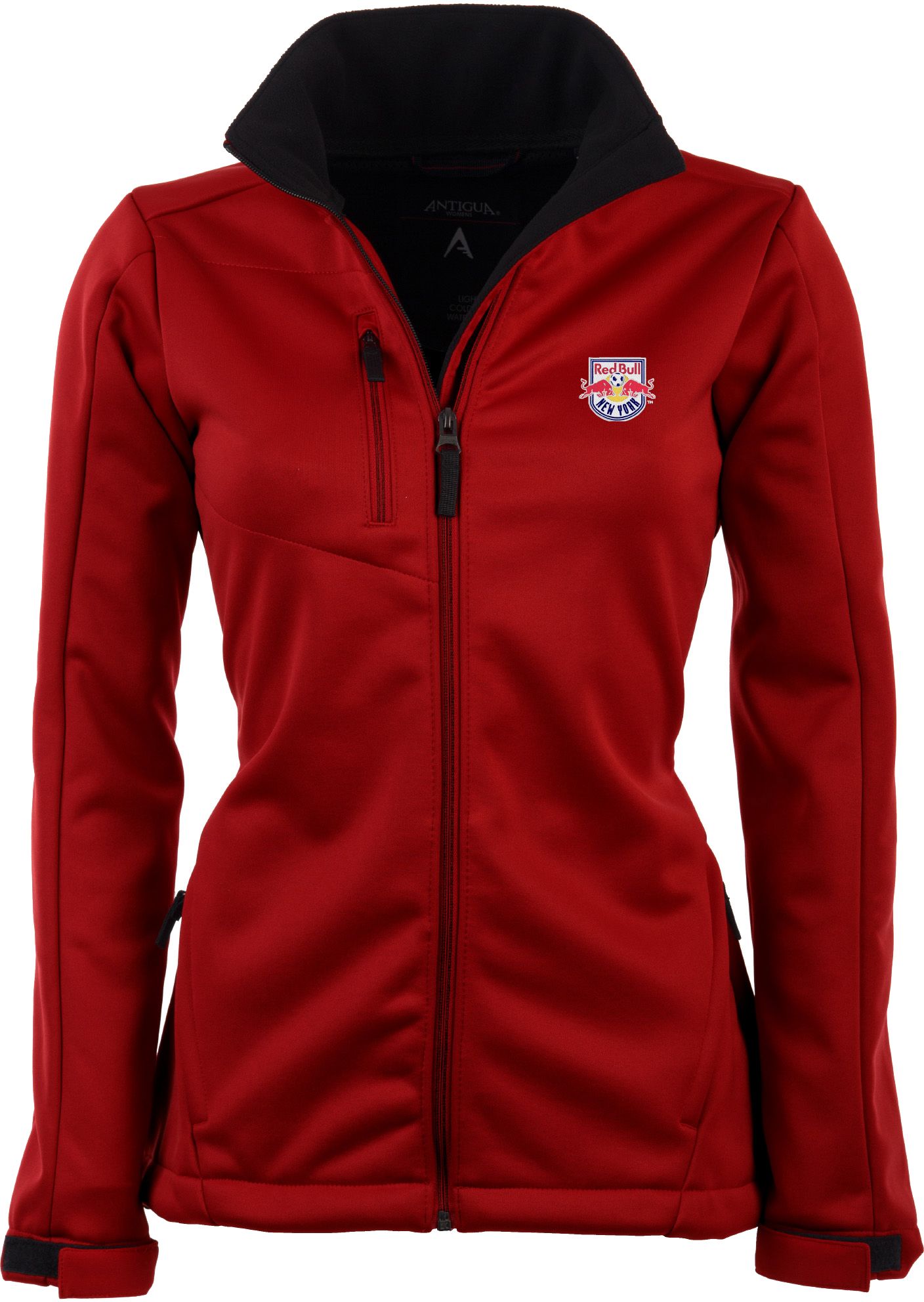 Set up a defense against the cooler temps and changing weather conditions in this Antigua® Women’s New York Red Bulls Traverse Jacket. It is made from 100% polyester interlock bonded fabric for durability, warmth and comfort. Embroidery on the chest displays a Red Bulls logo to show your fandom. It has two zippered hip pockets and a zippered chest pocket for storage. Stay warm and protected from the elements in this Red Bulls Women’s Jacket.