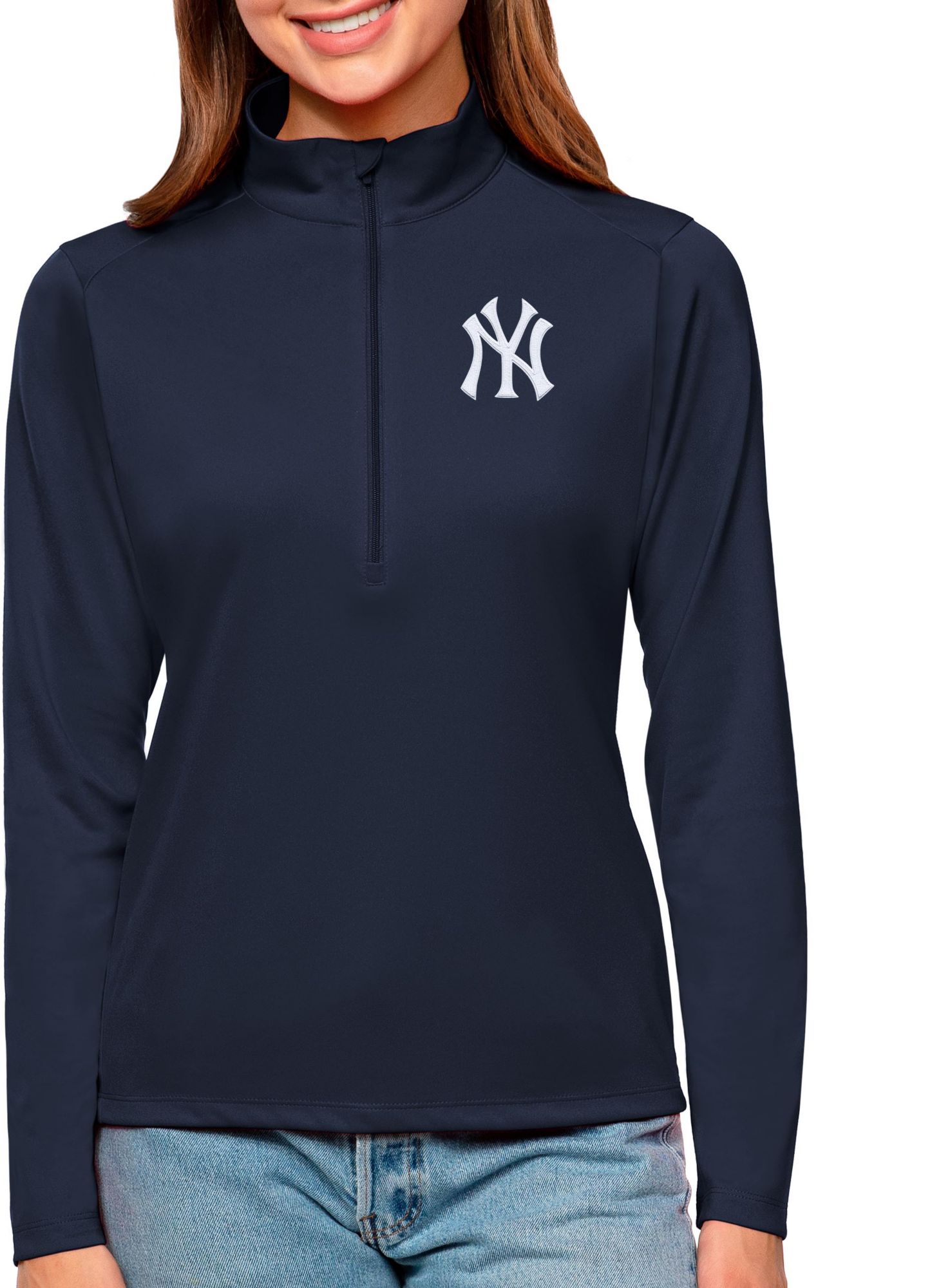 Antigua Women's New York Yankees Navy Tribute 1/2 Zip Pullover