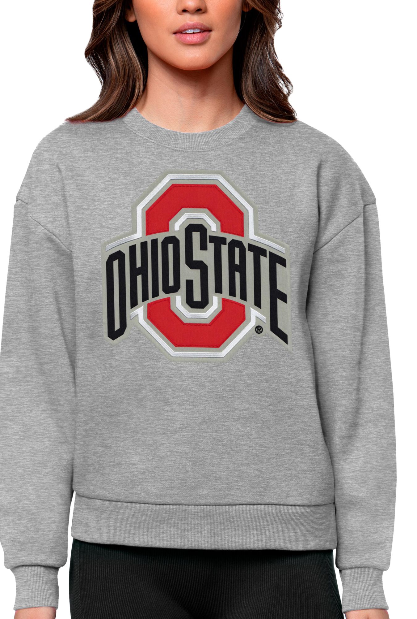 Antigua Women's Ohio State Buckeyes Grey Heather Victory Crew Sweatshirt