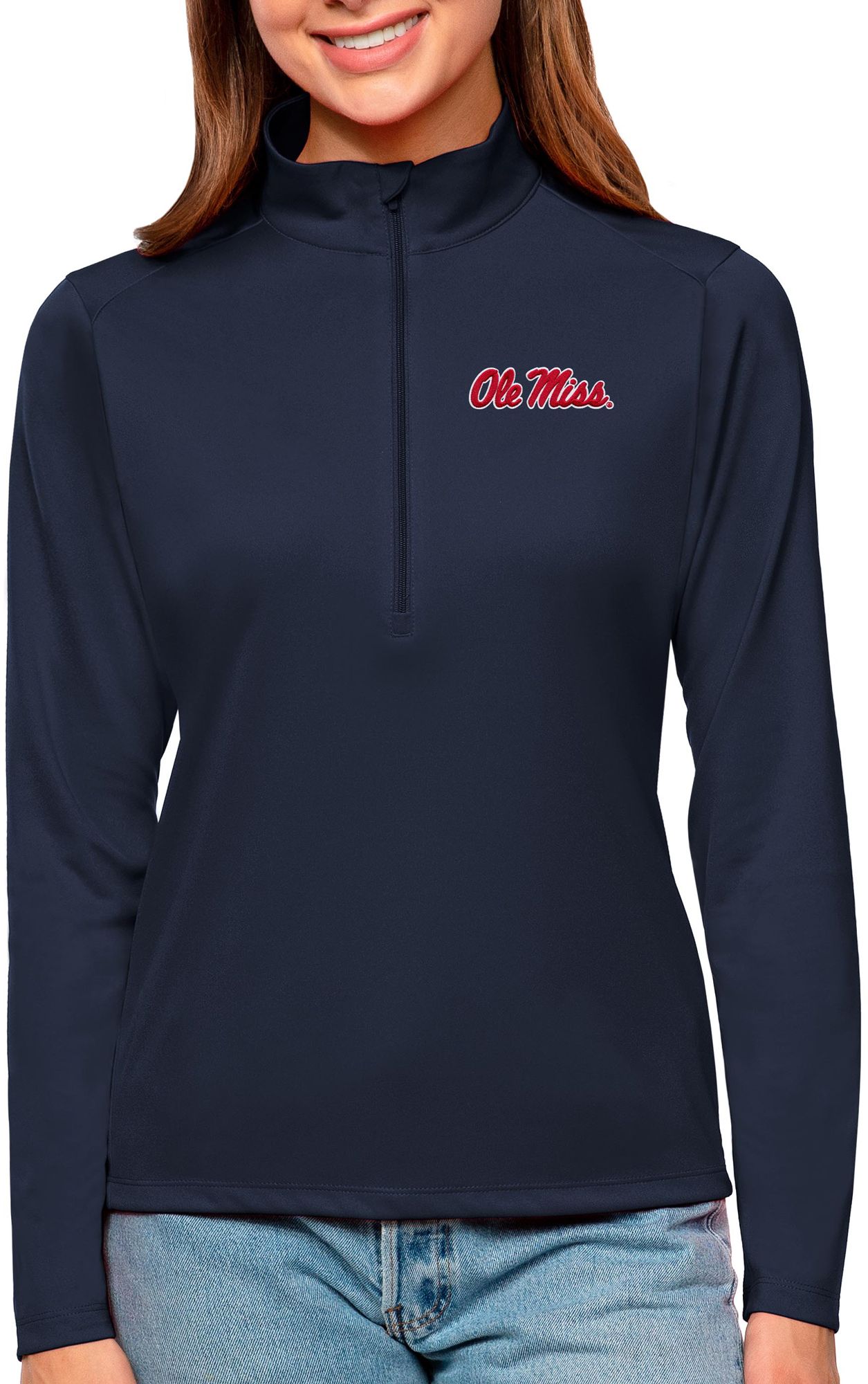 Antigua Women's Ole Miss Rebels Navy Tribute Quarter-Zip Shirt