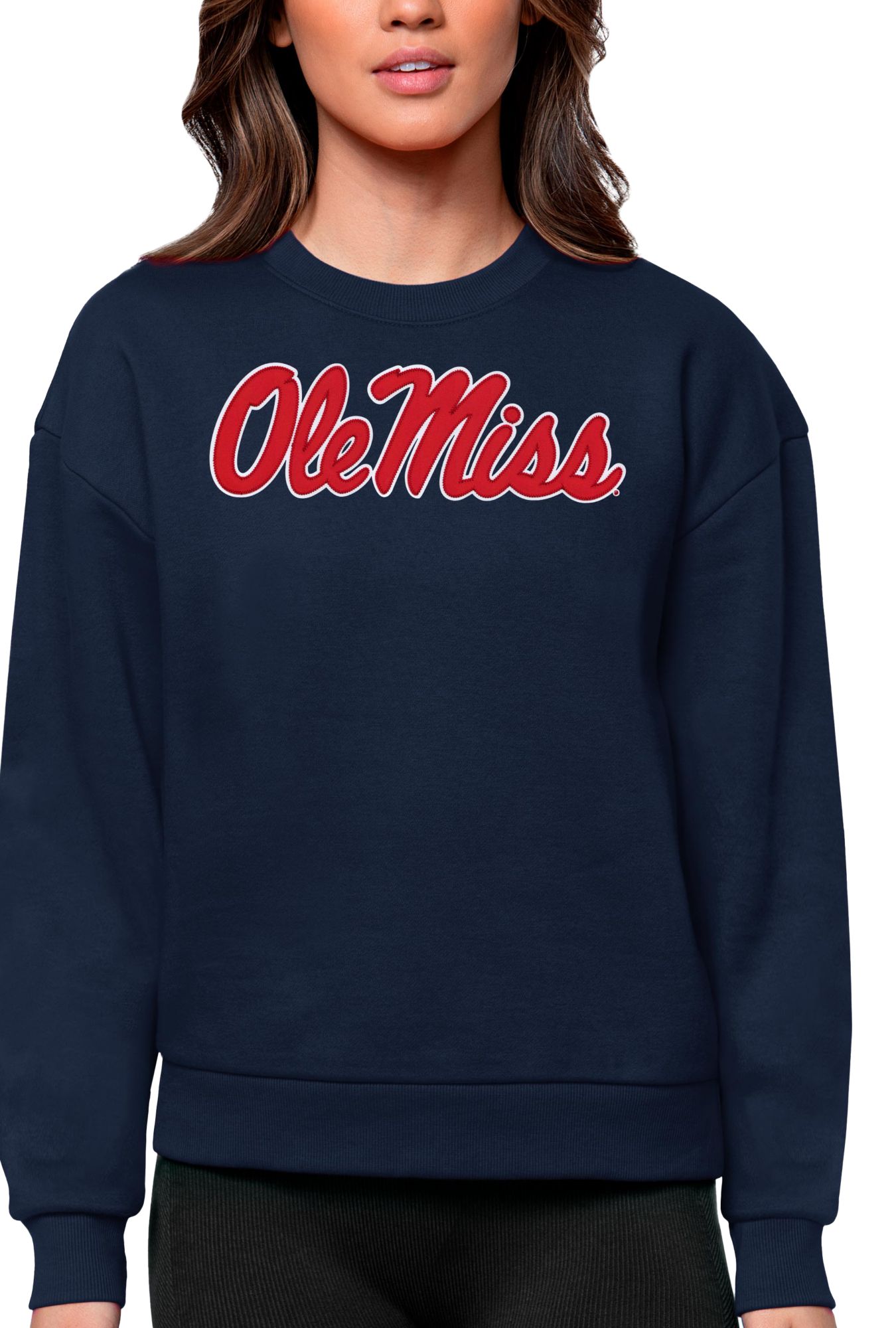 Antigua Women's Ole Miss Rebels Navy Victory Crew Sweatshirt