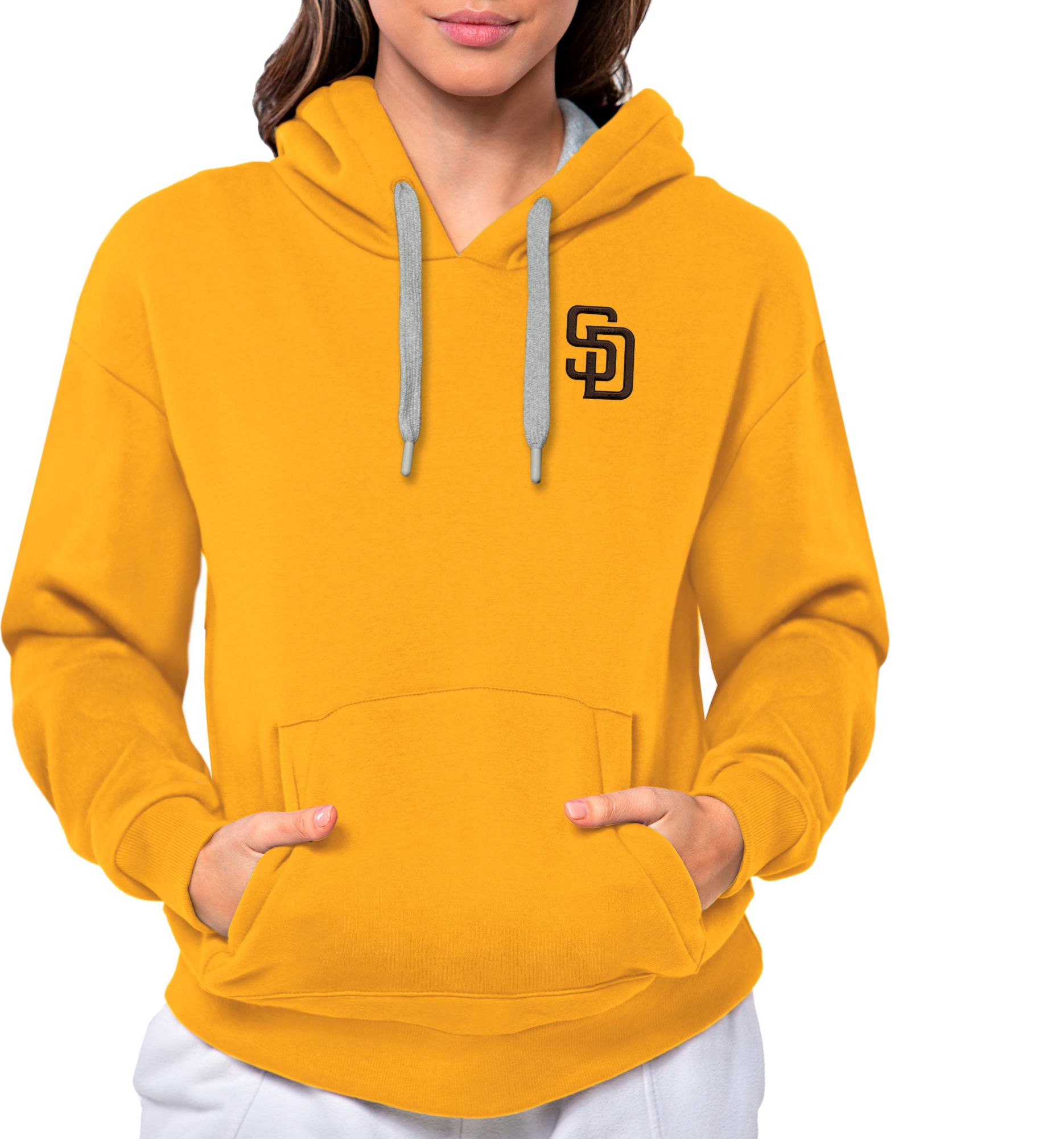Antigua Women's San Diego Padres Gold Victory Hooded Pullover