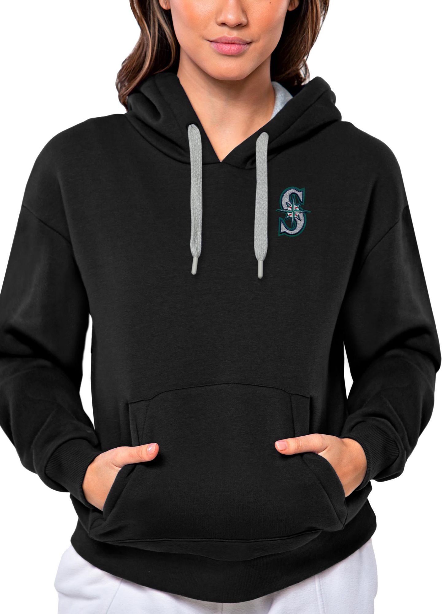 Antigua Women's Seattle Mariners Black Victory Hooded Pullover