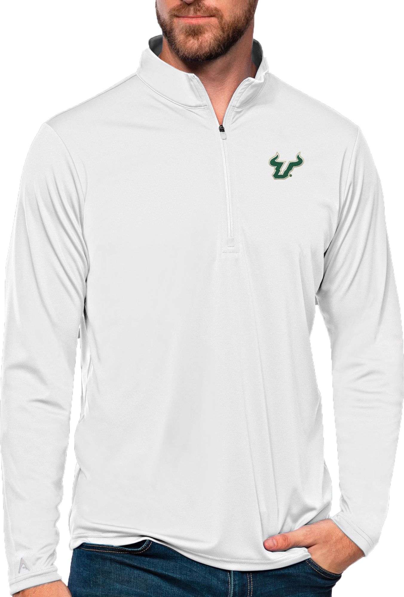 Antigua Women's South Florida Bulls White Tribute Quarter-Zip Shirt