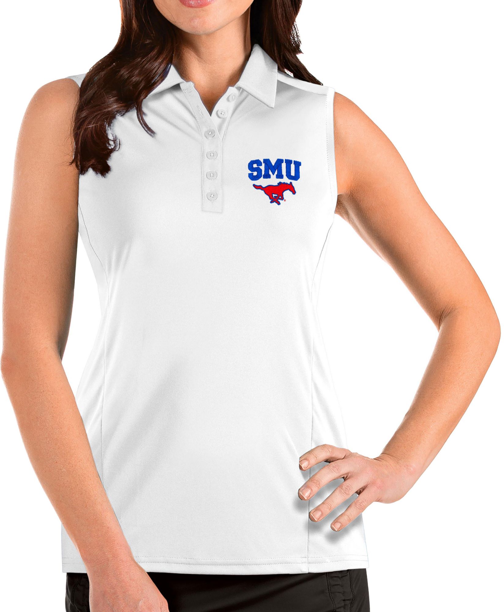 Stay cool at the Southern Methodist pregame in the Antigua® Women’s Southern Methodist Mustangs Tribute Sleeveless Tank Top.