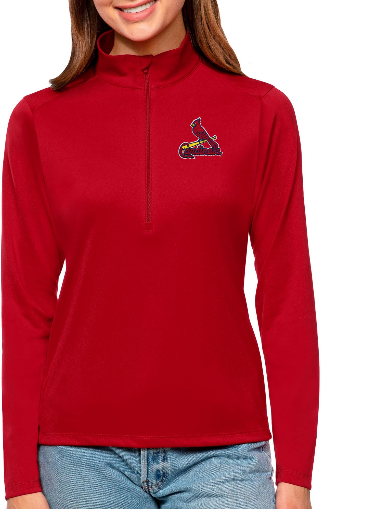 Antigua Women's St. Louis Cardinals Dark Red Tribute 1/2 Zip Pullover