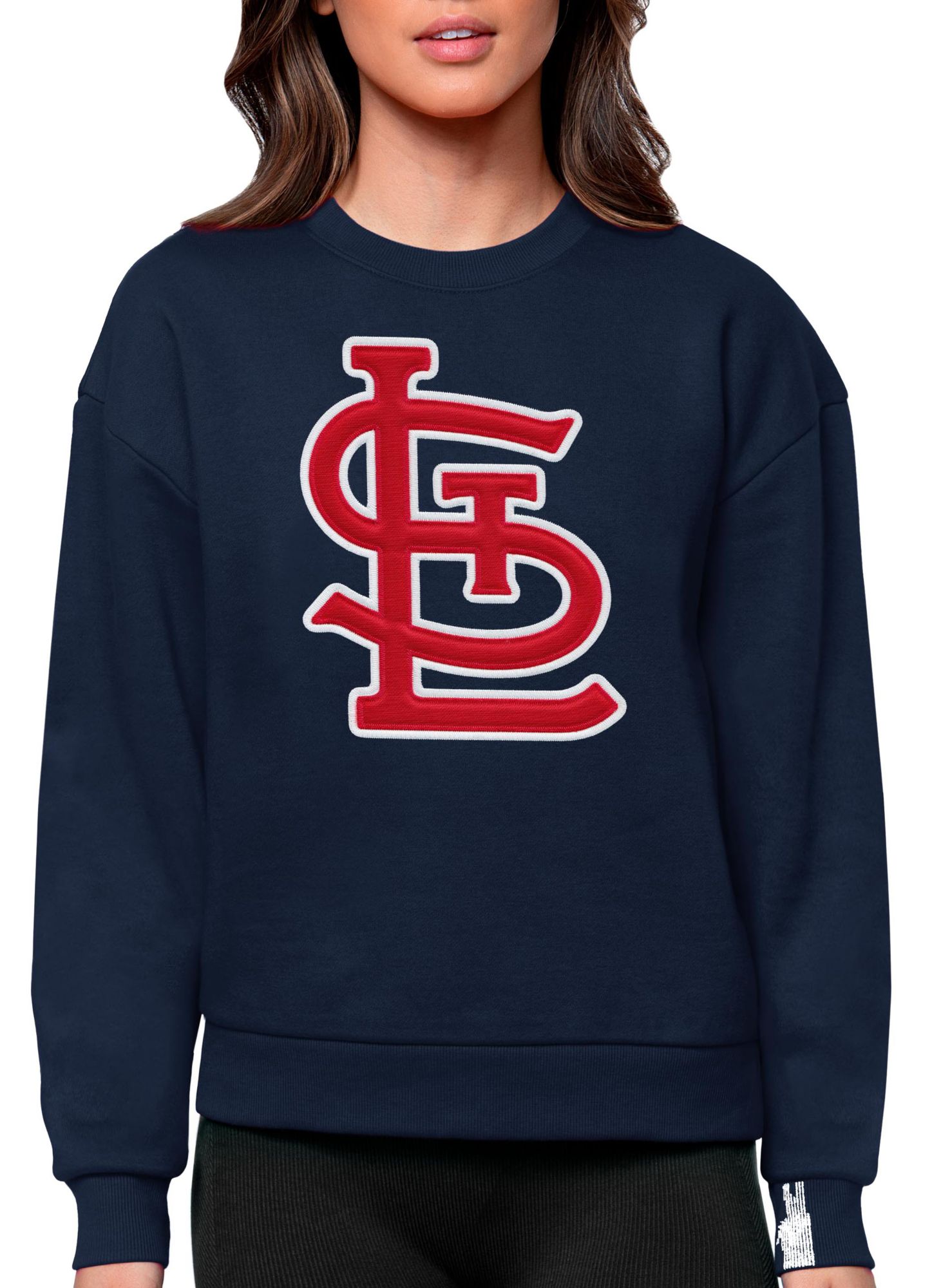 Antigua Women's St. Louis Cardinals Navy Victory Crew Pullover