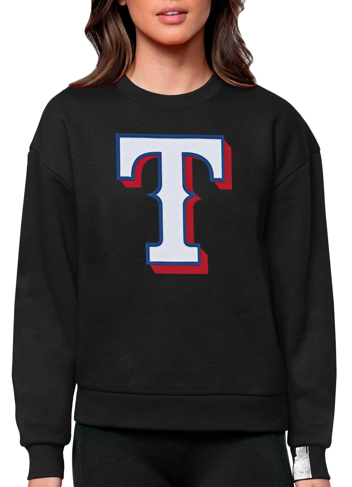 Antigua Women's Texas Rangers Black Victory Crew Pullover