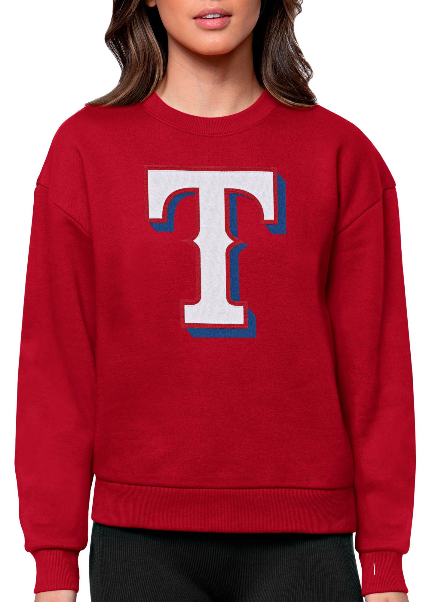 Antigua Women's Texas Rangers Red Victory Crew Pullover