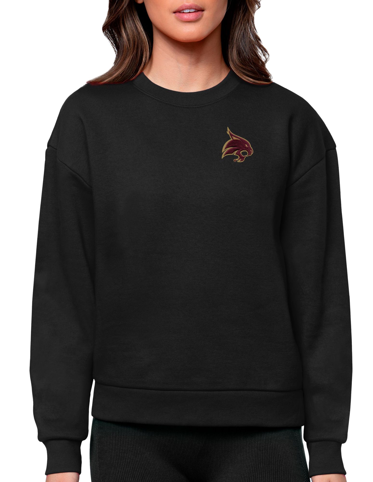 Antigua Women's Texas State Bobcats Black Victory Crew Sweatshirt