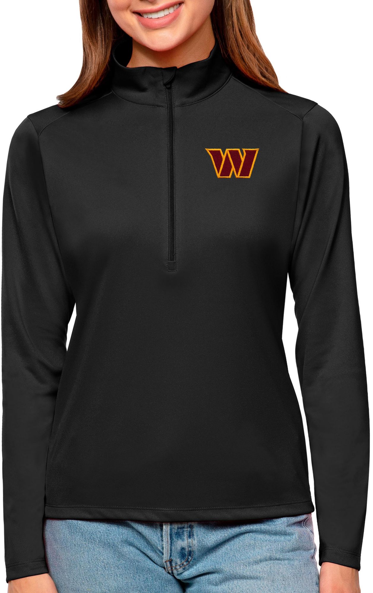 Antigua Women's Washington Commanders Tribute Black 1/4-Zip Pullover