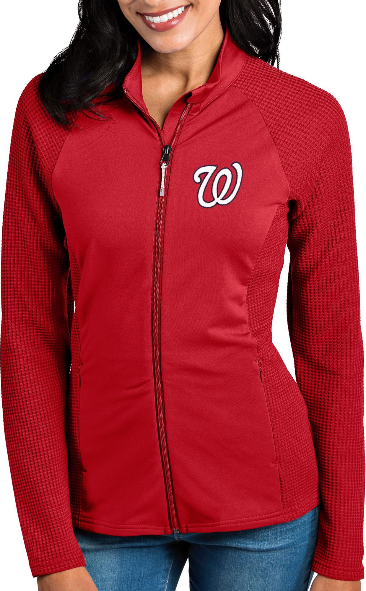 Stay dry as you cheer your team with the Antigua® Washington Nationals Performance Quarter-Zip Pullover featuring moisture-wicking Desert Dry™ Xtra-Lite D²XL technology.
