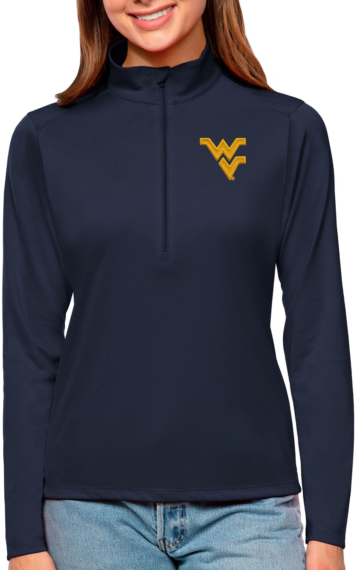 Antigua Women's West Virginia Mountaineers Blue Tribute Quarter-Zip Pullover