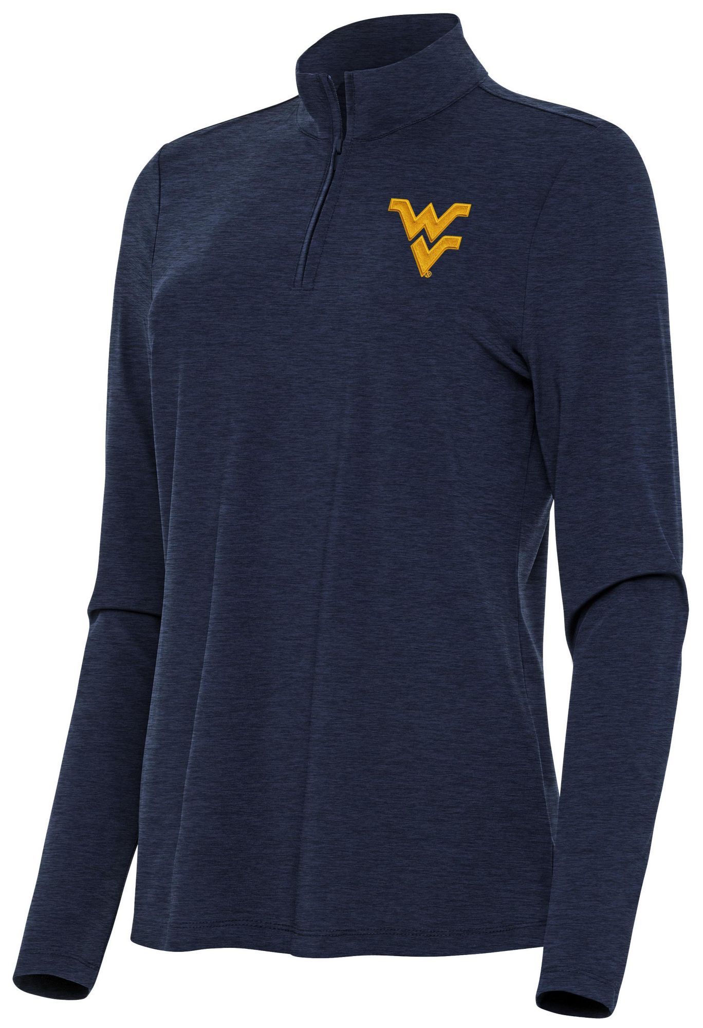 Antigua Women's West Virginia Mountaineers Navy Heather Bright 1/4 Zip Pullover
