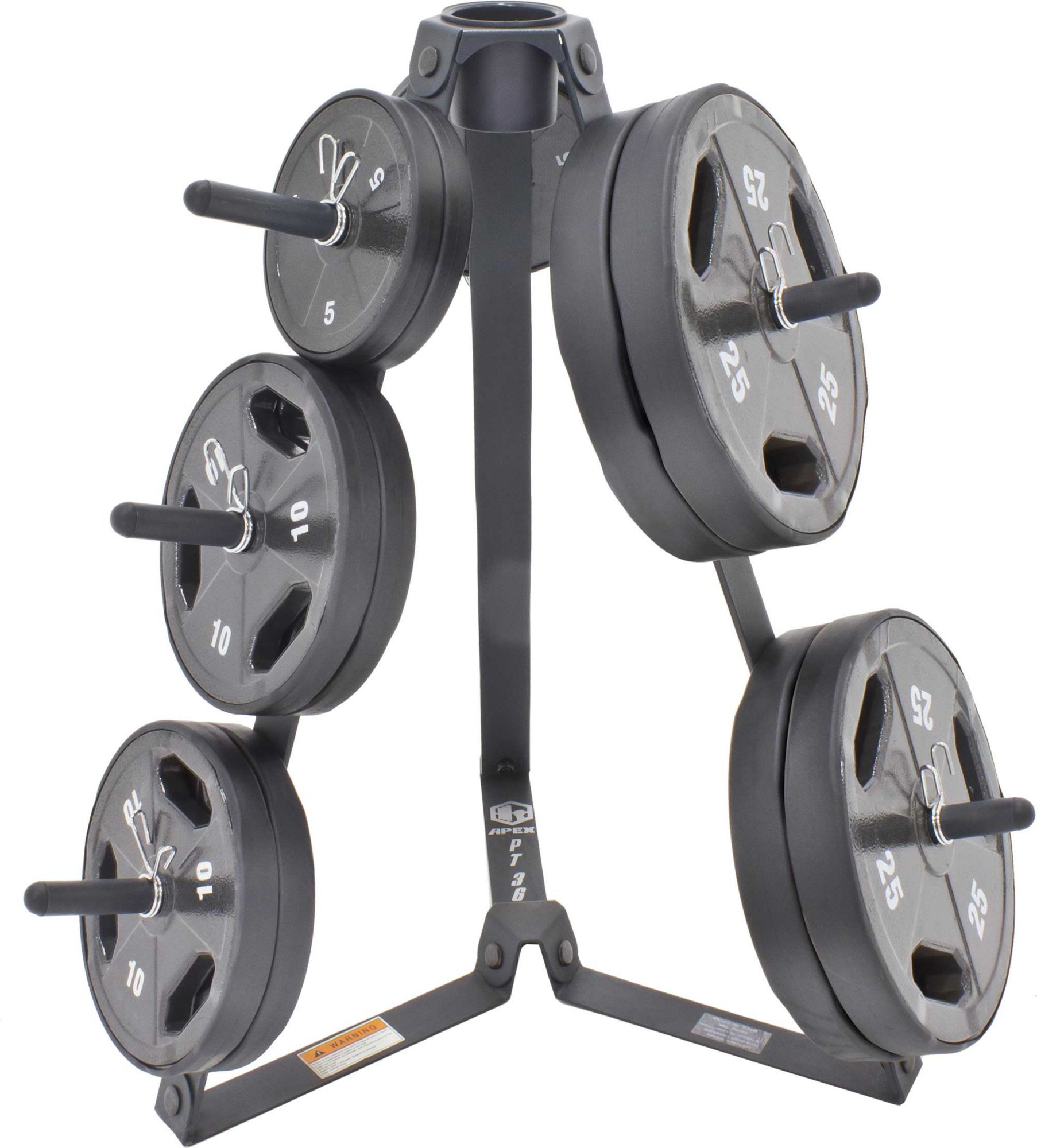 Efficiently organize your weight plates with the Marcy® Standard Plate Tree. This durable, 22 lb weight tree rack accommodates all of your standard 1” plates and organizes them in an easy-access removal and replacement design. With a convenient cup holder at the top and sturdy, powder-coated steel construction, this is sure to be your new best friend for your home fitness area.
